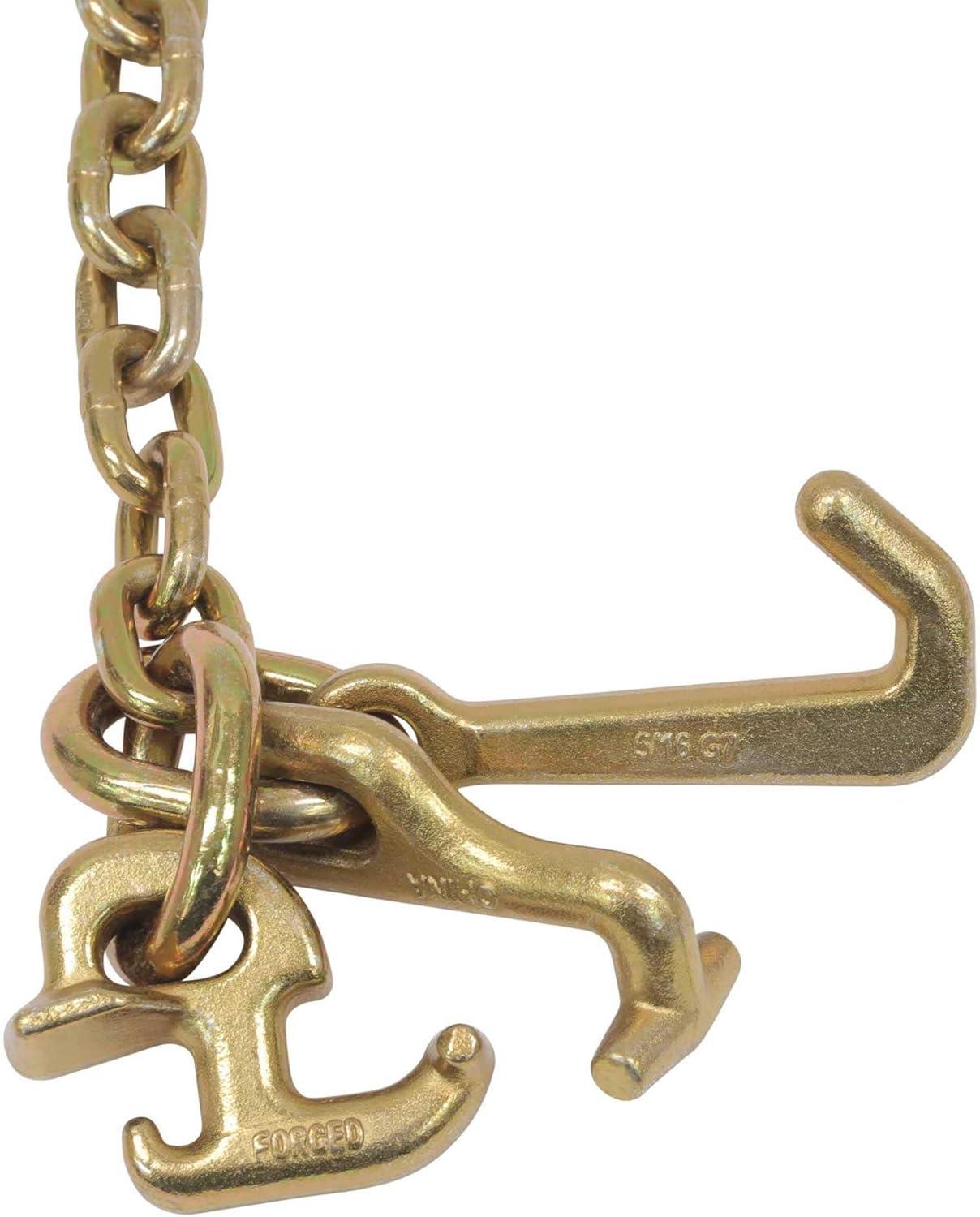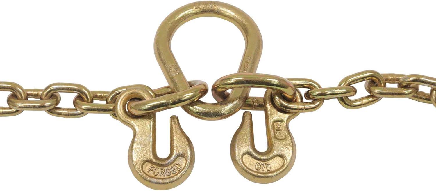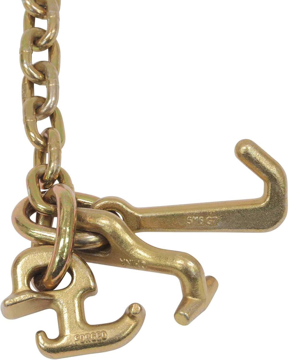 Mytee Products 5/16″ Grade 70 V-Chain Bridle w/RTJ Cluster Hooks & Grab Hooks – 3′ Legs Transport Tow Truck Chains for Car Towing – 4700 LBS WLL – for Flatbed Trailer Wrecker Recovery(1 – Pack)