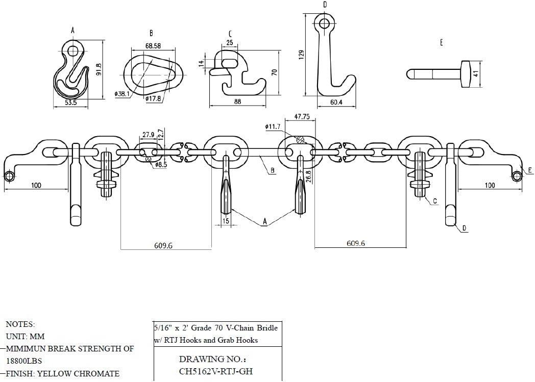 Secure Towing Function – The V-Chain Bridle with RTJ Cluster Hooks is designed to securely tow vehicles & cargo. It can be attached to a tow truck or flatbed trailer & provides a reliable means of transporting cars or other items.