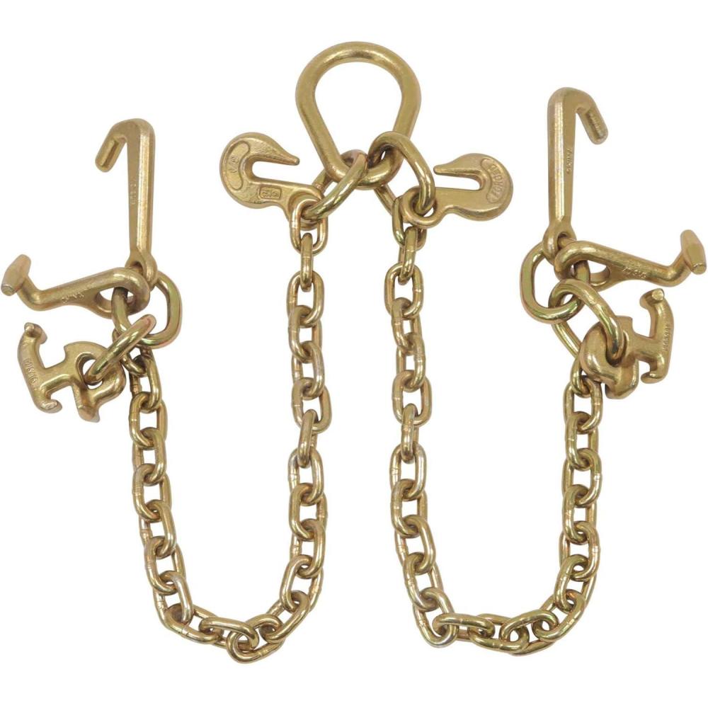 Mytee Products 5/16" Grade 70 V-Chain Bridle w/RTJ Cluster Hooks & Grab Hooks - 3' Legs Transport Tow Truck Chains for Car Towing - 4700 LBS WLL - for Flatbed Trailer Wrecker Recovery(1 - Pack)