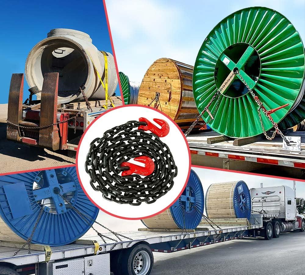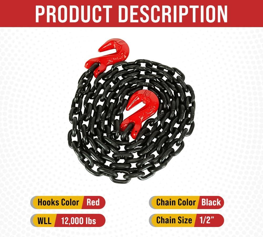 • Easy Identification: The chain has a black coating to resist the elements. Red painted Clevis G80 grab hook on both ends for easy identification. It meets or exceeds industry standards, making it a trustworthy choice for demanding tasks.