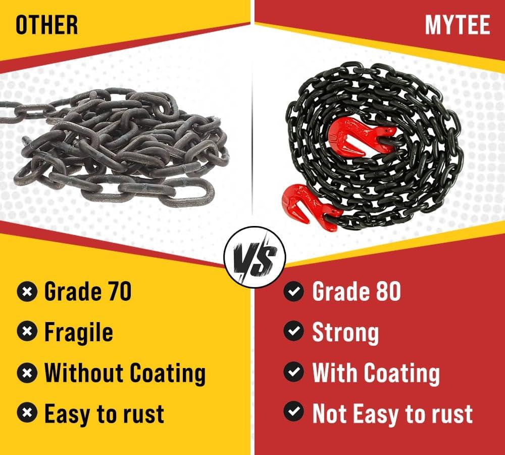 Be the first to review “Mytee Products 5/16″×10′ G80 Black Transport Binder Chain w/Clevis Grab Hooks for Towing – 16000 lbs Breaking Strength Heavy Duty Safety Tow Chain for Lifting – Tie Down Binding Equipment(2 – Pack)”
