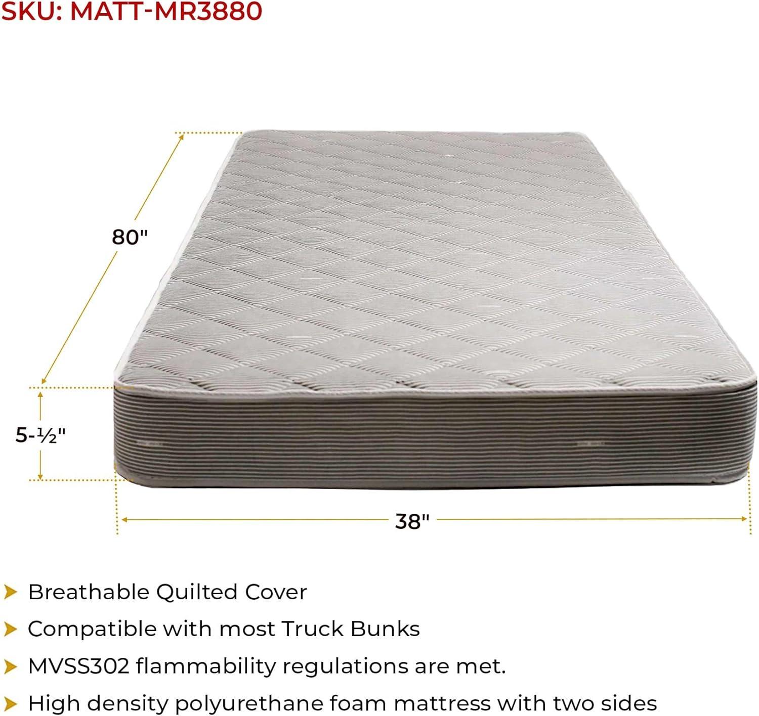 Mytee Products 5.5 Inch Mattress for RV Trailer & Camper 38"x80" - Luxury Foam with Pinstripe Design & Quilted Cover Both Sides - Breathable Trailer Bed Mattress for Truckers