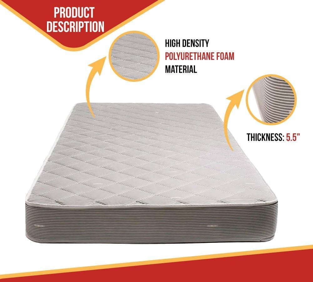 Mytee Products 5.5 Inch Mattress for RV Trailer & Camper 38″x80″ – Luxury Foam with Pinstripe Design & Quilted Cover Both Sides – Breathable Trailer Bed Mattress for Truckers