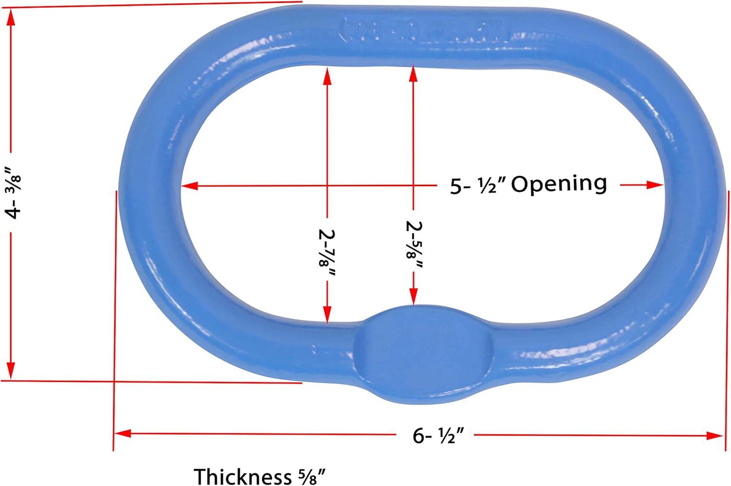 Mytee Products 5/8 Inch Oblong Master Link for Chain & Wire Rope, Grade 100 – WLL 7,700 Lbs (3.5 Tons), Blue – 4:1 Safety Factor – Alloy Steel, Heavy-Duty, Oval Master Link Ring for Lifting(4)