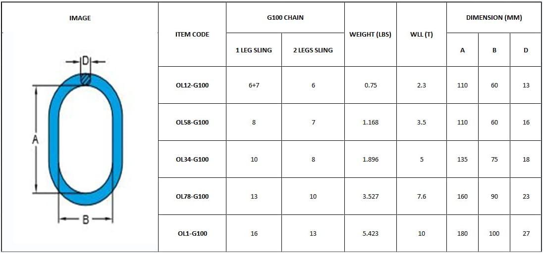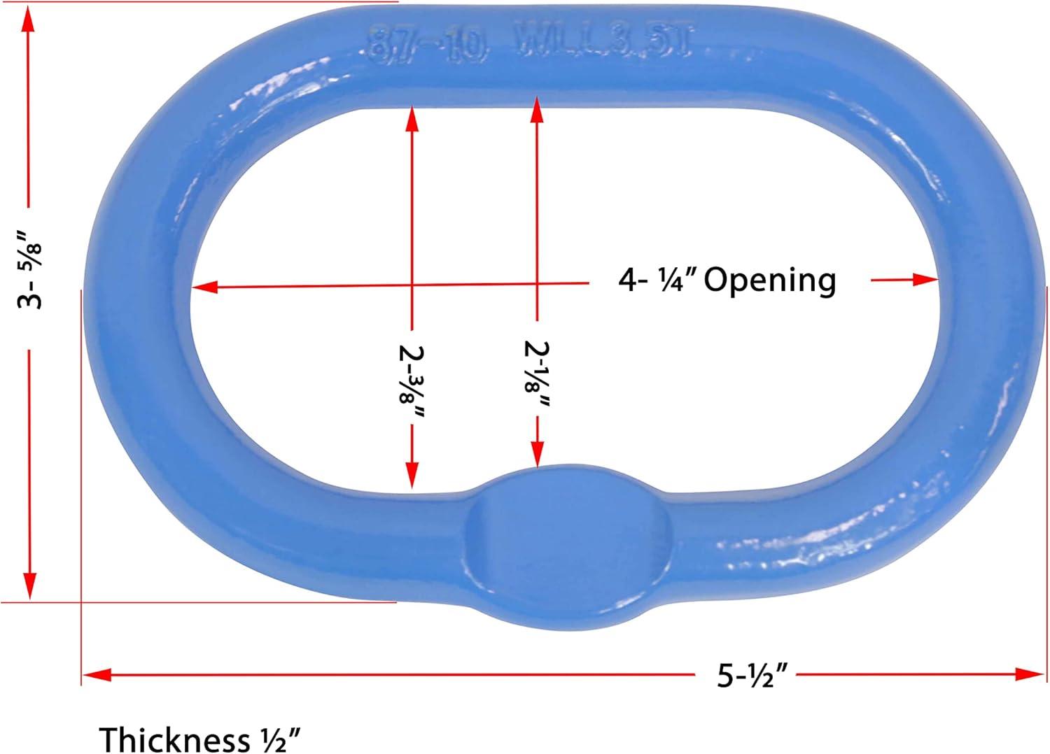 Mytee Products 5/8 Inch Oblong Master Link for Chain & Wire Rope, Grade 100 – WLL 7,700 Lbs (3.5 Tons), Blue – 4:1 Safety Factor – Alloy Steel, Heavy-Duty, Oval Master Link Ring for Lifting(4)