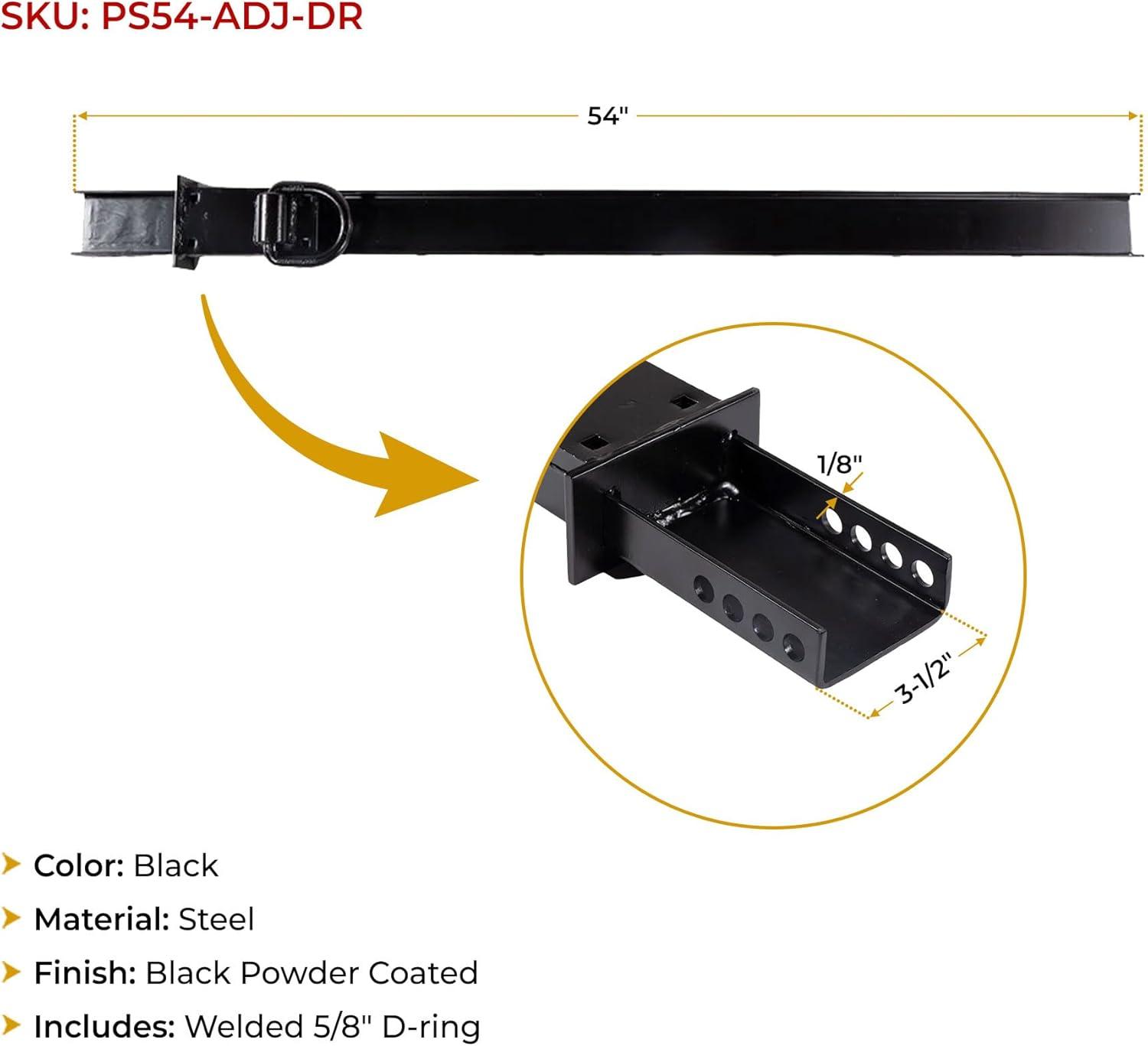 The stake pocket features an adjustable design and has an overall length of 54 inches, allowing for flexible height configurations.
