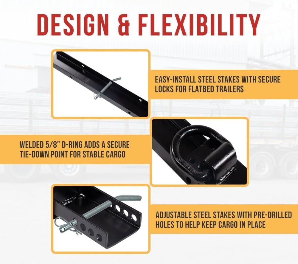 Mytee Products 54″ Adjustable C Channel Pipe Stake for Flatbed Trailer Hauler (4 Pack)(C Channel Pipe Stake w/ D Ring)