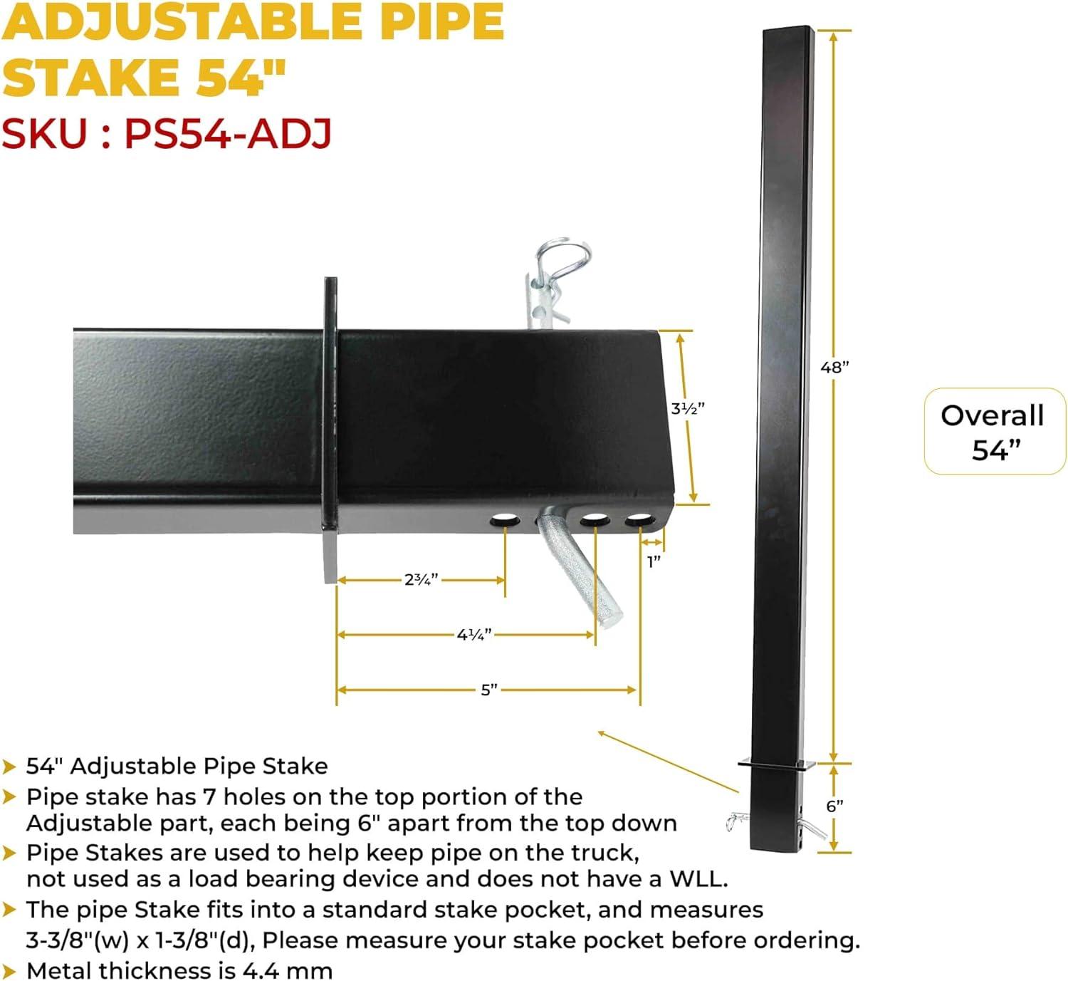 The stake pocket features an adjustable design and has an overall length of 54 inches, allowing for flexible height configurations.