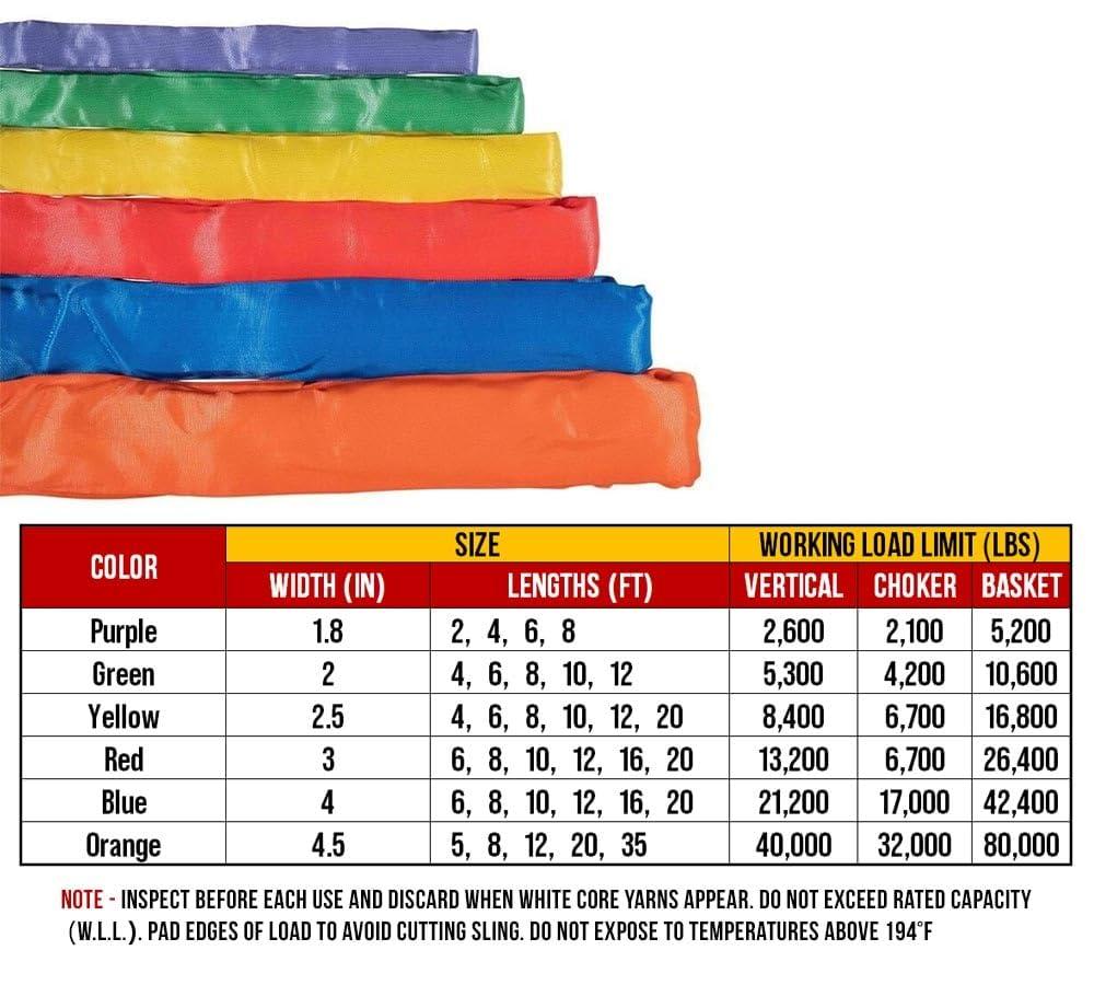 imageMytee Products 6 ft Purple Polyester Endless Round Sling 2600 LBS Vertical Capacity  2100 LBS Choker  5200 LBS Basket  Heavy Duty Endless Sling for Wrecker Recovery Lifting ampamp TowingOrange  Vertical Capacity 40 000 lbs