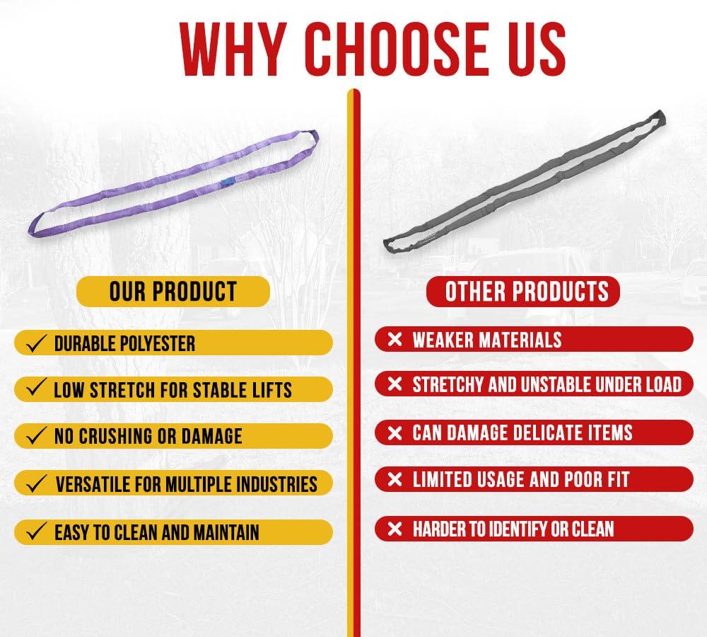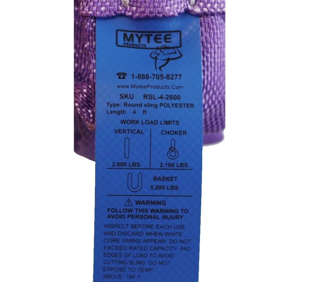 Mytee Products 6 ft Purple Polyester Endless Round Sling 2600 LBS Vertical Capacity | 2100 LBS Choker | 5200 LBS Basket | Heavy Duty Endless Sling for Wrecker Recovery, Lifting & Towing(Purple - Vertical Capacity: 2 600 lbs.)