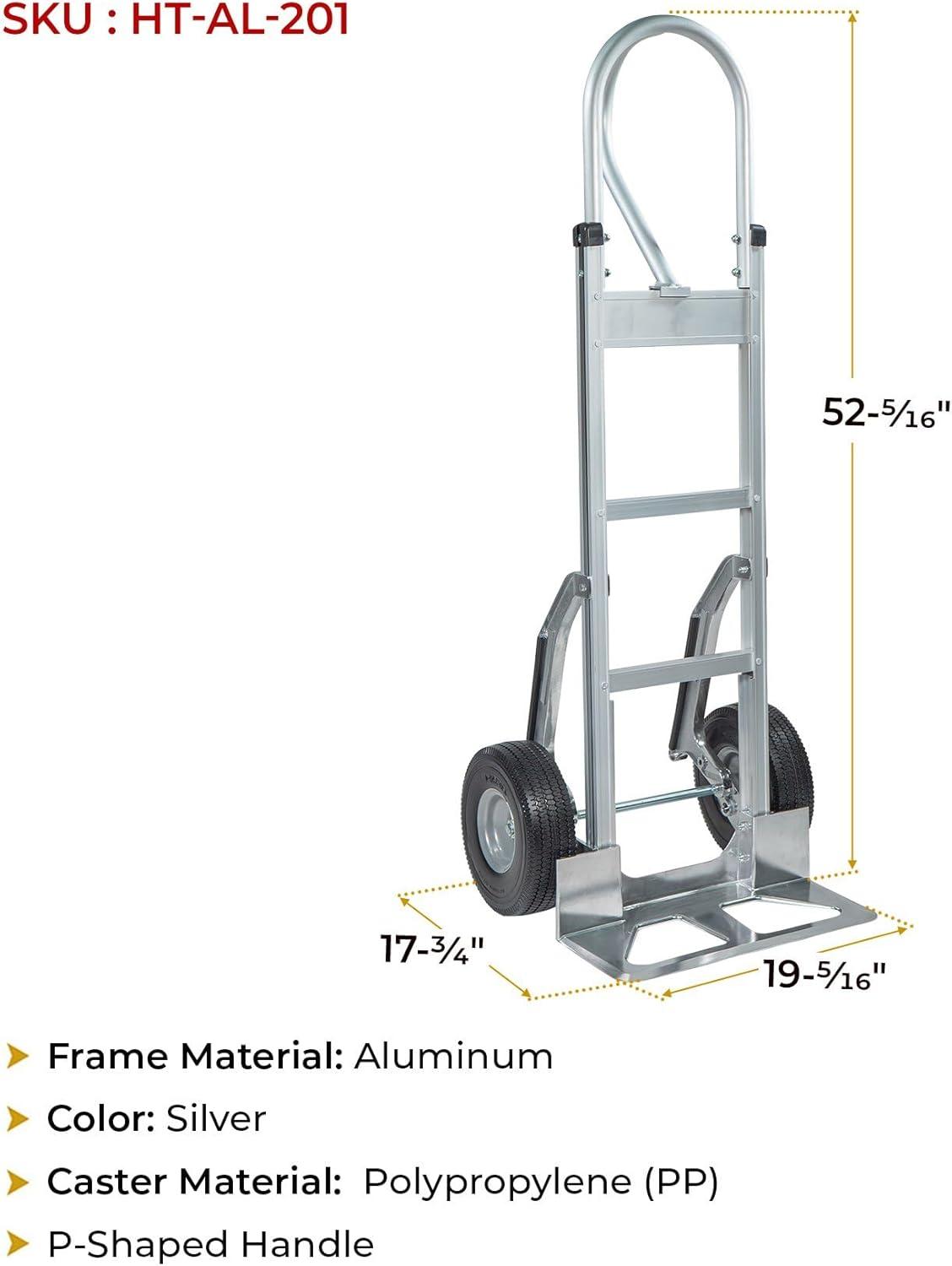 Our Aluminum Hand Truck w/ P Handle & Stair Climber – 600 lbs Capacity, 10″ Casters will make your lifting and moving experience better and hassle-free. This versatile equipment will enable you to handle a variety of materials across different settings, like warehouses, distribution centers, retail, merchandising, etc. We have engineered this hand dolly truck for your convenience, including non-marring wheels, which are lightweight, ergonomic, and durable. Explore its other features.