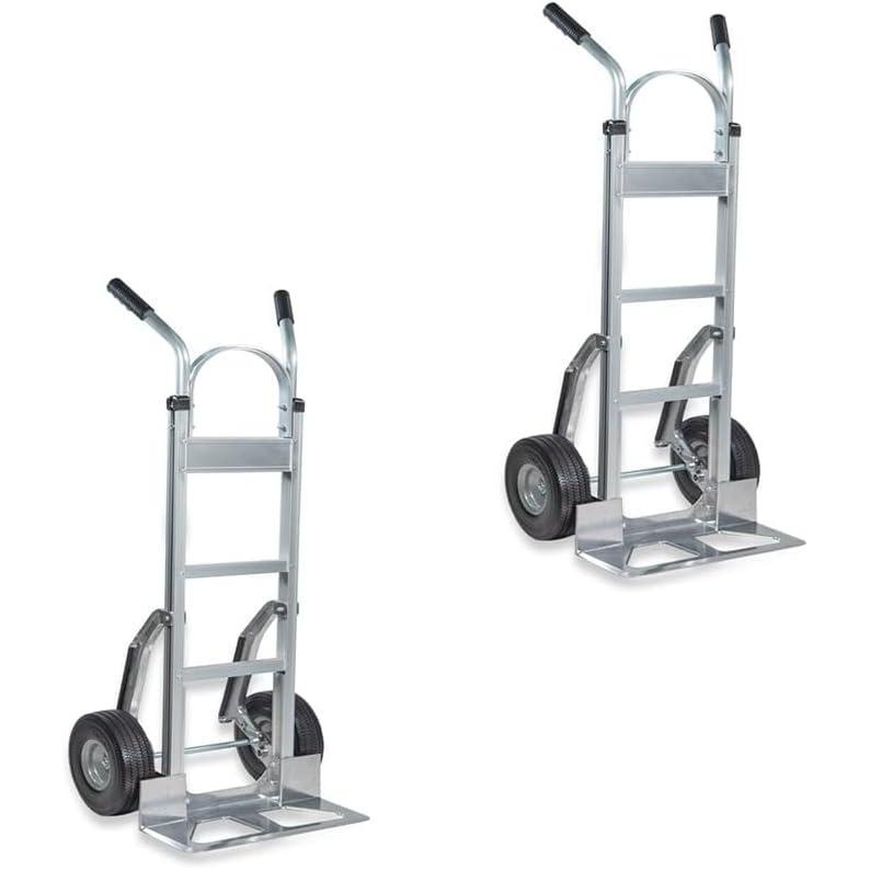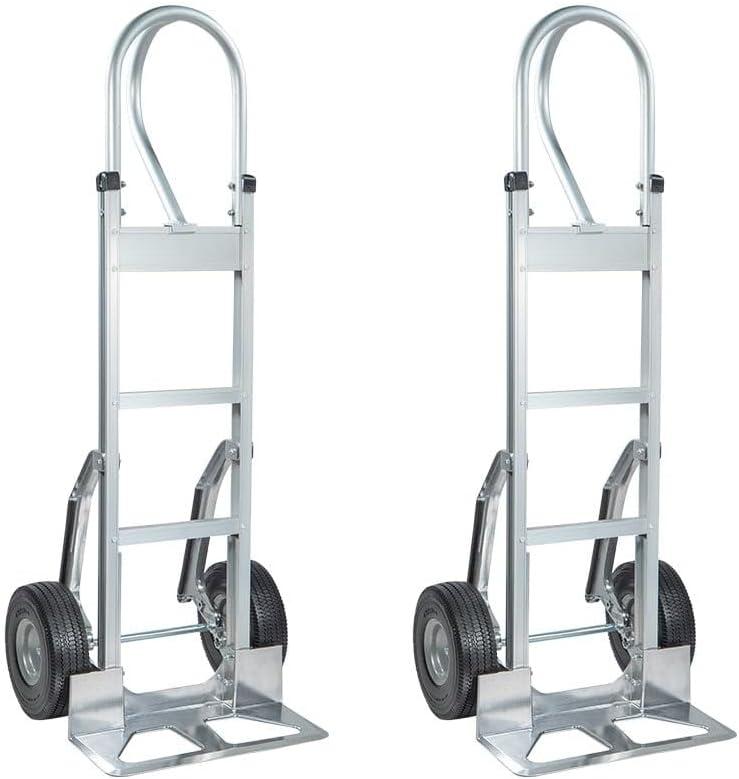 Mytee Products 600 lbs Aluminum Hand Truck Heavy Duty Dolly with P Handle & 10" Caster Wheels - Hand Truck with Skid Bars & Vertical Loop Handle - 52.3" x 17.5" with 19.3" x 7.5" Nose Plate(2 - Pack)