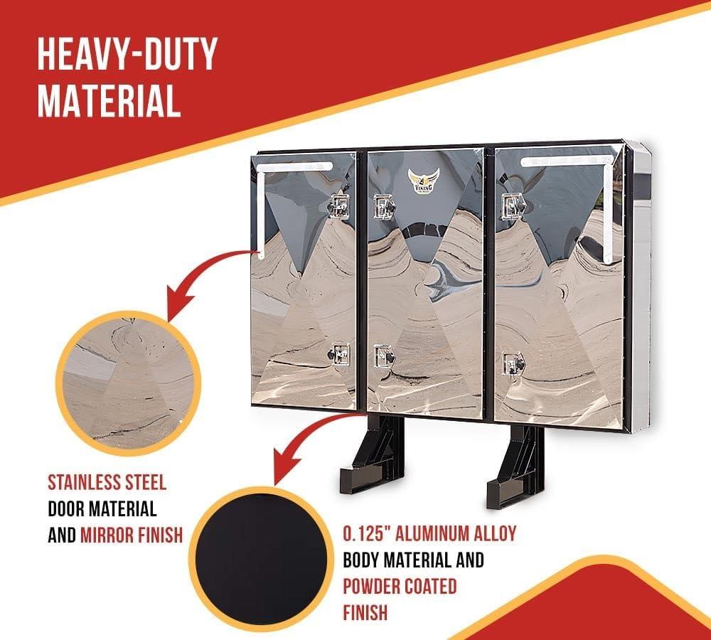 Mytee Products 68″ x 80″ x 14″ Black Viking Vaulted Aluminum Flatbed Trailer Cab Rack with 3 Mirror Finish Doors – Headache Rack for Semi Trucks for Easy Haul & Store Trailer Equipments(3-Door)