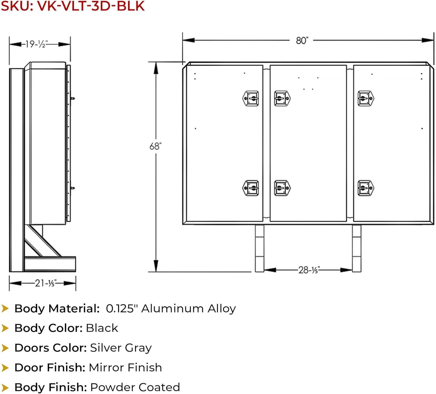 Height: 68″ | Width: 80″ | Depth: 14″ | Thickness: 1/8″