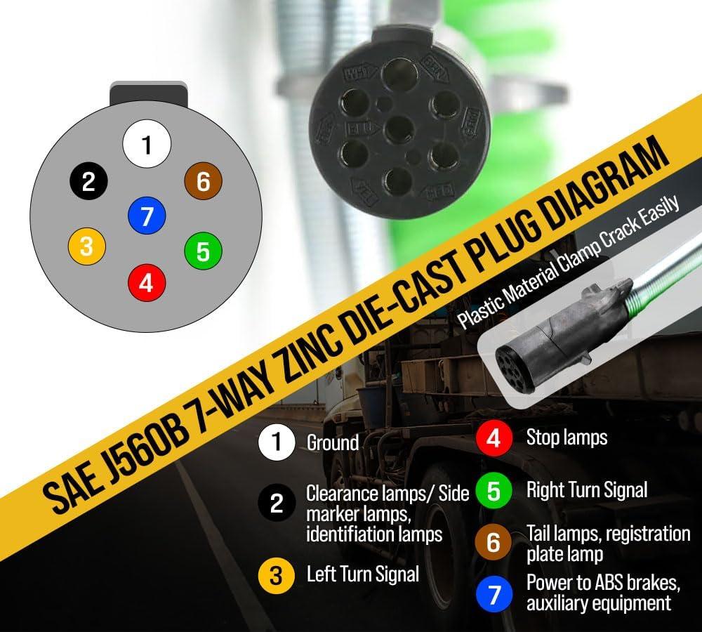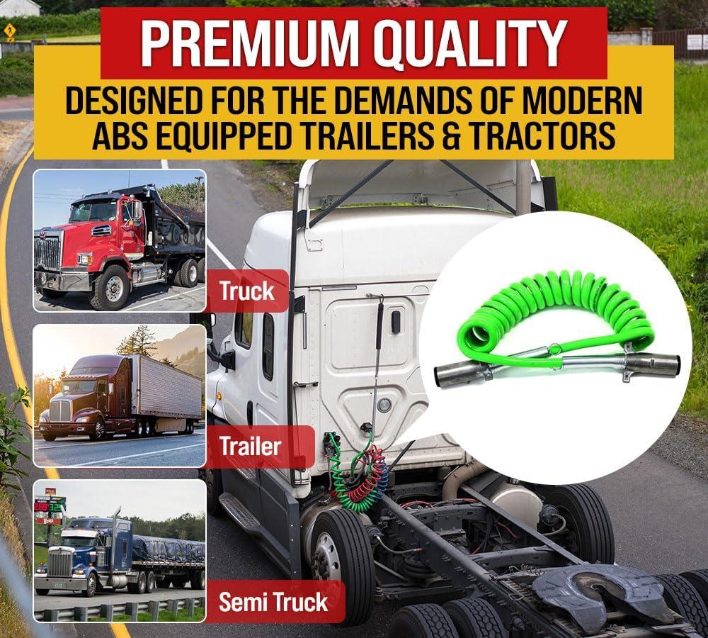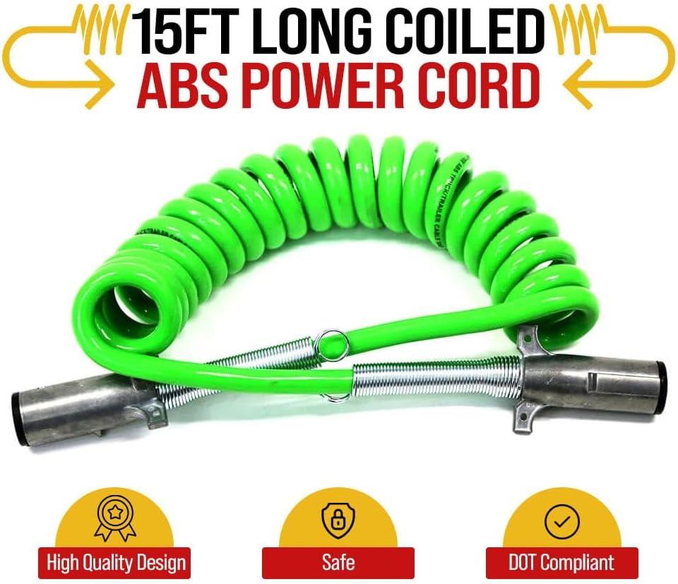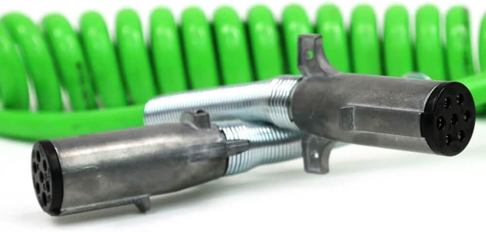 15ft Long Coiled ABS Power Cord, Trailer Lead : 48″ Lead with Zinc Die-Cast Plugs & Tractor Lead: 12″ Lead with Zinc Die-Cast Plugs