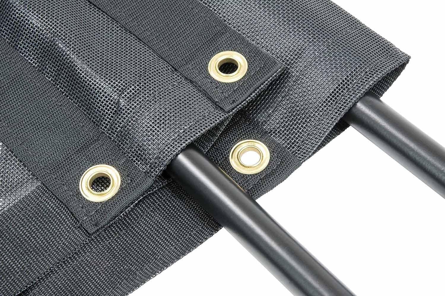 PVC MESH Pockets w/ Grommets on the Rear End allow use of Anti-Sail Bar or bungee to keep back secure.