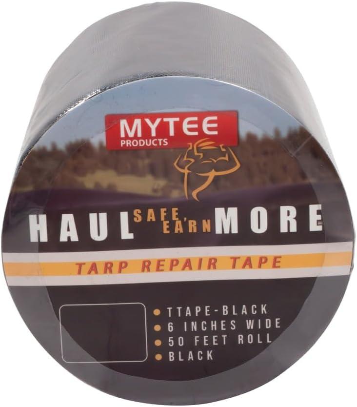 Mytee Products 8.8 oz Waterproof White Vinyl Tarp Repair Tape 6 Inch x 50 FT with Heavy Duty Adhesive Backing – Tarp Patch Kit, Tarp Repair Kit(Black)