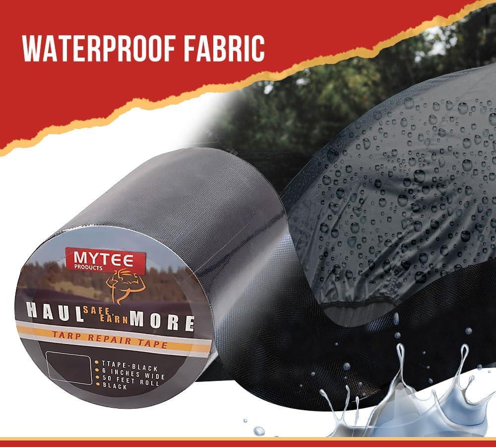 Mytee Products 8.8 oz Waterproof White Vinyl Tarp Repair Tape 6 Inch x 50 FT with Heavy Duty Adhesive Backing - Tarp Patch Kit, Tarp Repair Kit(Black)