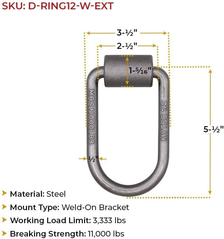 Mytee Products 8 Pack 1/2″ Heavy Duty Weld-On Extended Forged D Ring w/ Mounting Brackets – 11000 lbs Bracking Strength – Tie Down Anchor D-Ring for Trailer, Truck Cargo, RV, ATV Tiedowns(20 – Pack)