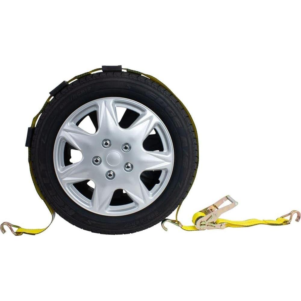 Durability & Resistance: Made with high-quality polyester webbing, these tire tie down straps over the wheel resist damage from scrapes & cuts, offering long-lasting durability.