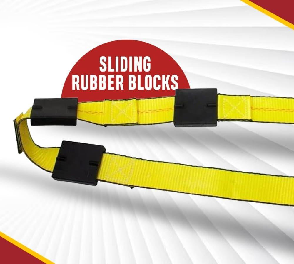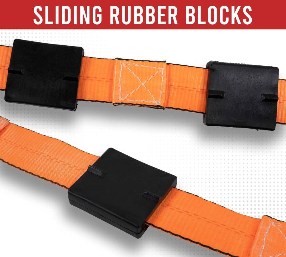Effective Load Positioning: The sliding rubber blocks ensure proper placement on the tire & additional load stability during transport for these auto hauler straps.