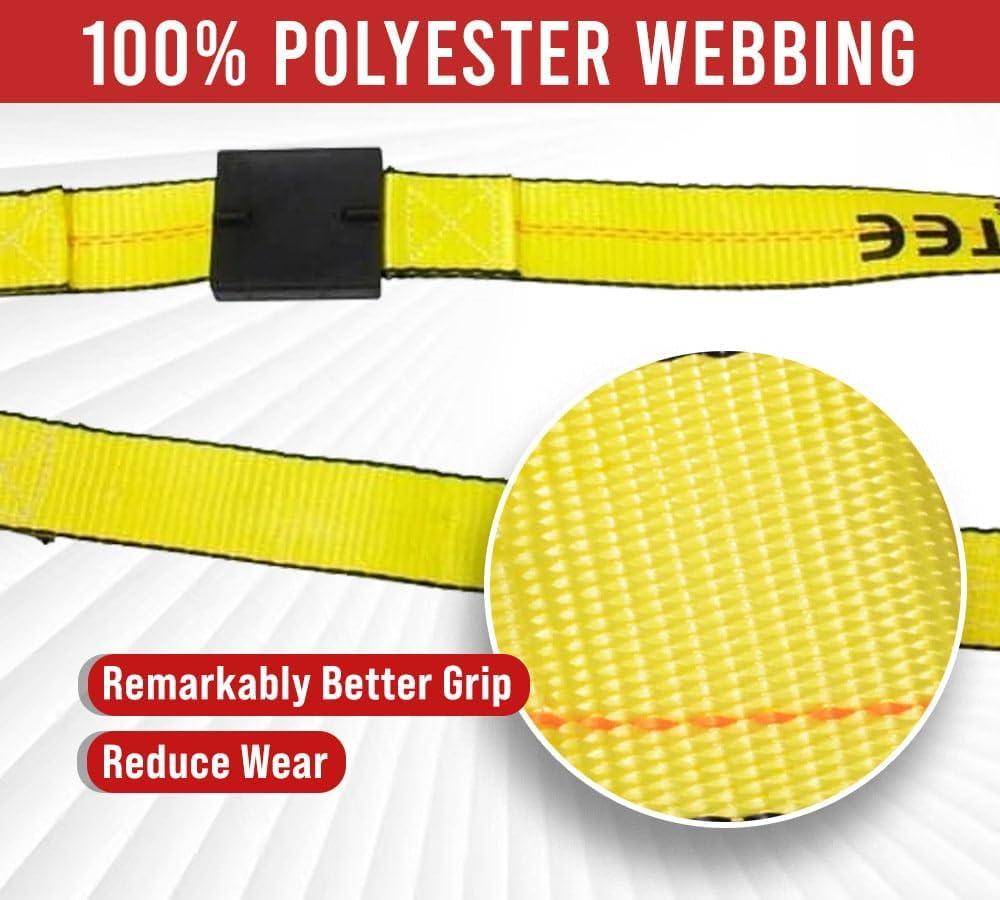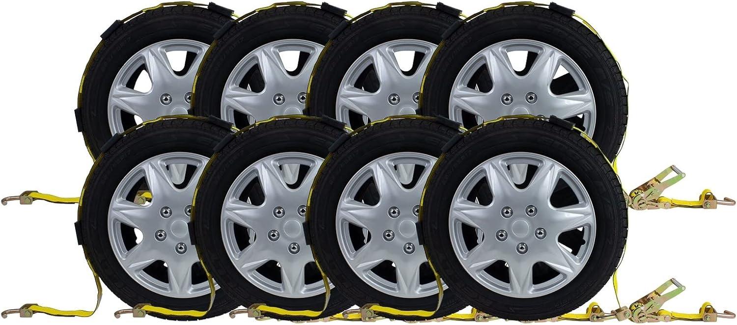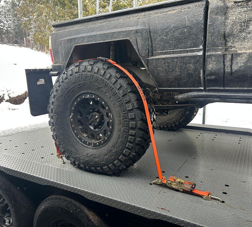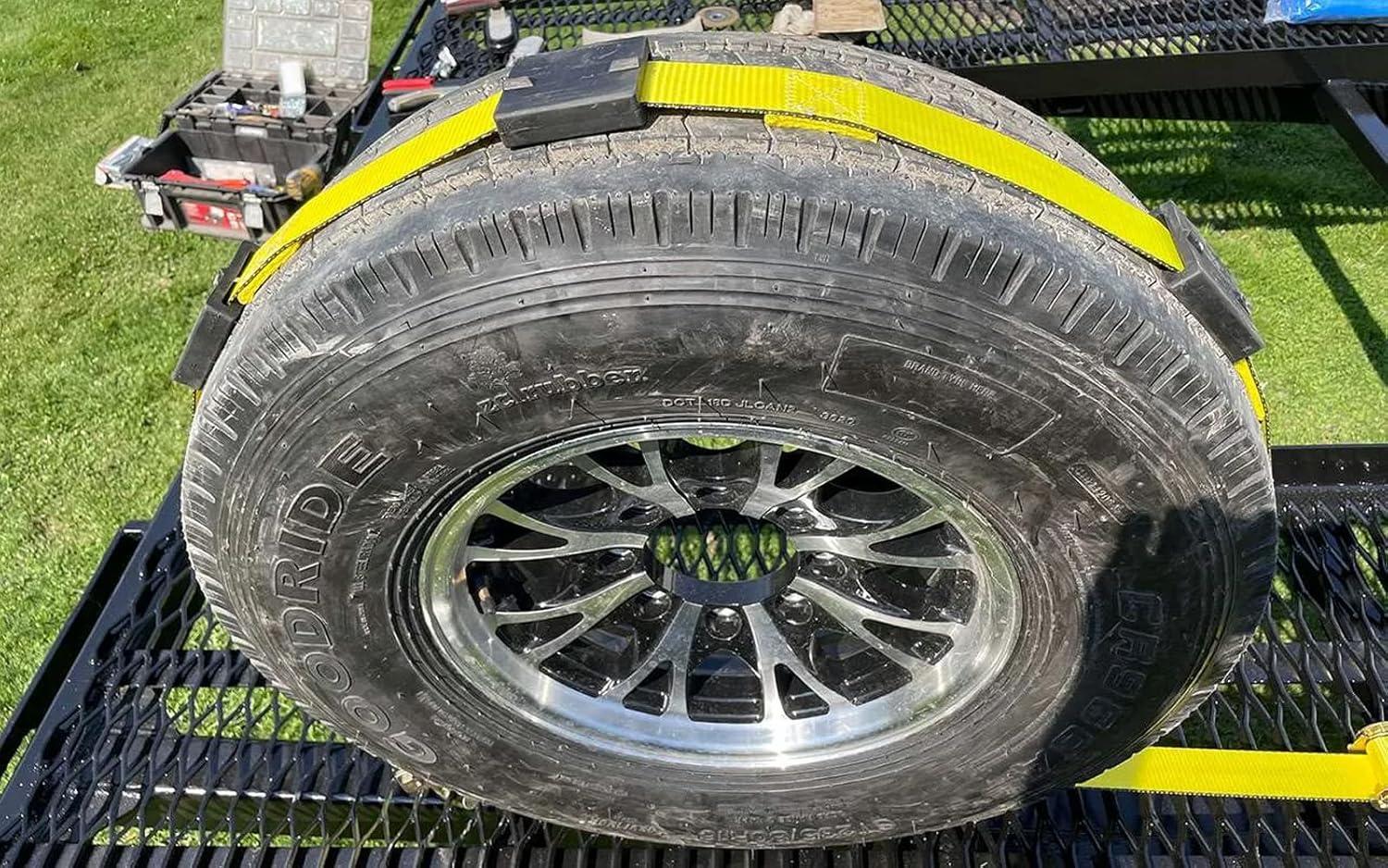 Durability & Resistance: Made with high-quality polyester webbing, these tire tie down straps over the wheel resist damage from scrapes & cuts, offering long-lasting durability.