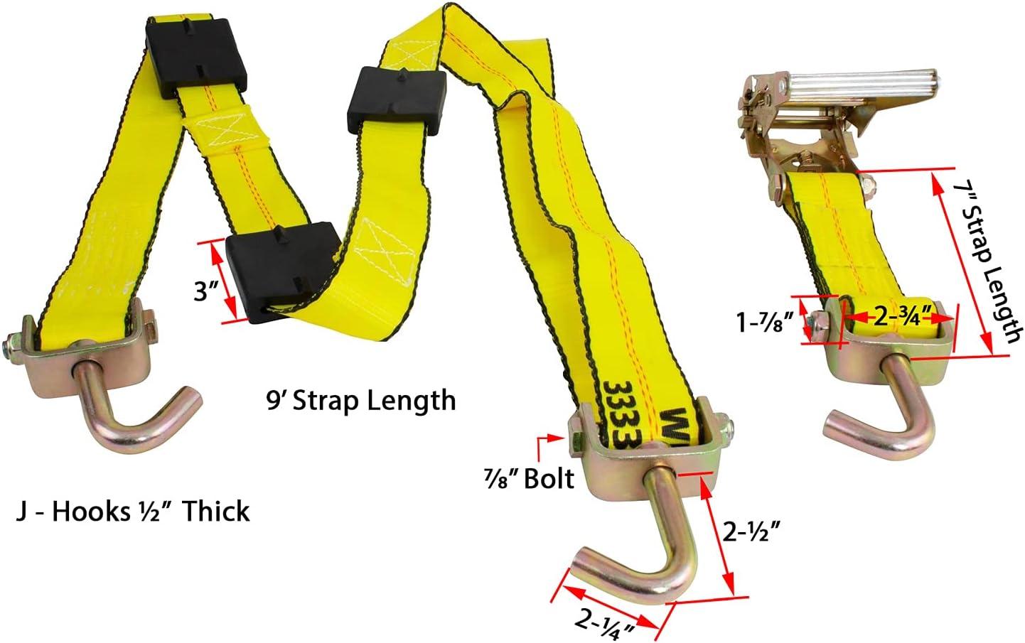 Corrosion-resistant Ratchet & Hooks: The gold chromate-plated ratchet & hooks resist rust & metal damage, enhancing the longevity & reliability of these tire straps for trailer.