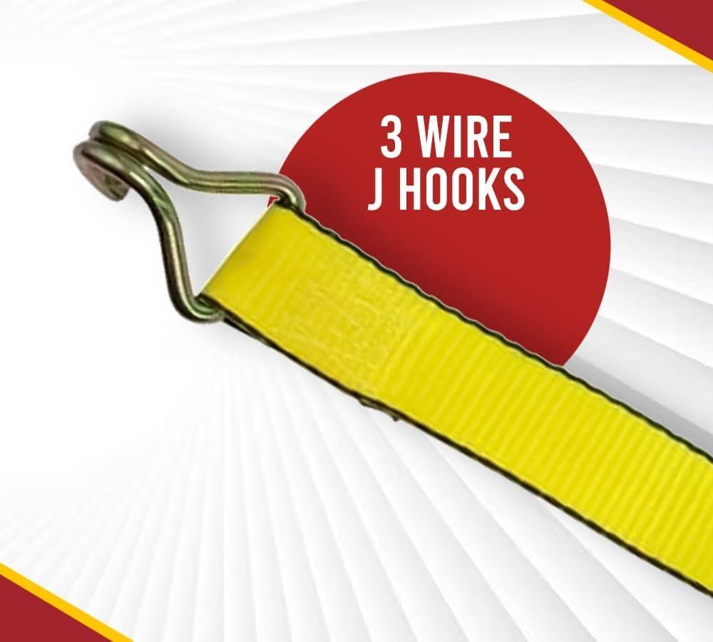 • THREE WIRE J-HOOK END FITTINGS: J-hooks are compatible with any flat anchor points, including tie-plates, shackles, or stake pockets on the side of a trailer bed. They can also be compatible with an L-Track anchor system if you incorporate a flat-hook receiver. Our flat hooks are made from heavy duty steel and sustain a high working load limit.