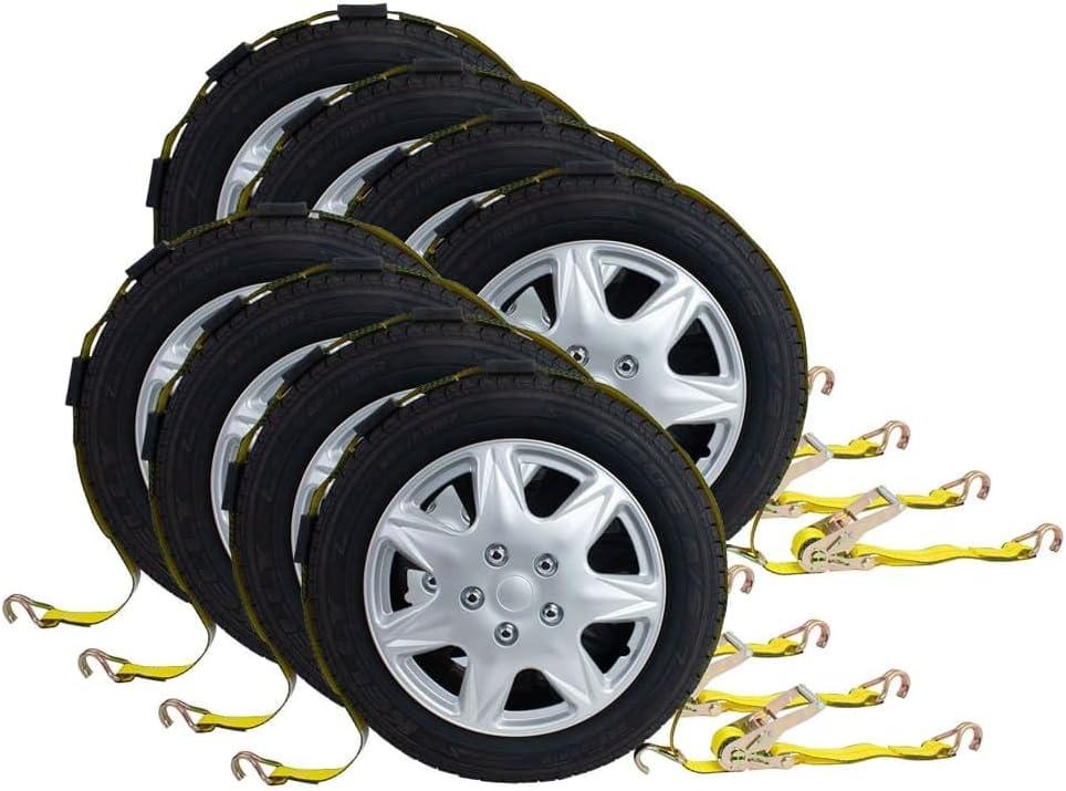 Mytee Products 8 Pack 2″ x10′ Car Tie Down Straps for Trailers with Ratchet – 5,000 LBS Breaking Strength Over The Tire Wheel Straps for Auto Car Haulers, UTV, Truck Trailer Bed(Yellow)
