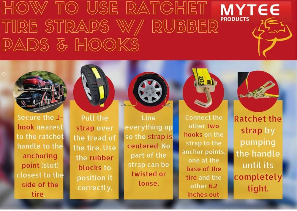 imageMytee Products 8 Pack 2quot x10 Car Tie Down Straps for Trailers with Ratchet  5000 LBS Breaking Strength Over The Tire Wheel Straps for Auto Car Haulers UTV Truck Trailer Bed4  Pack