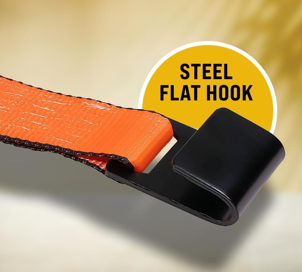 Mytee Products 8 Pack 2" x30' Winch Straps w/Flat Hook - 3333lbs WLL - Blue Heavy Duty 2 Inch Cargo Control Tie Down Straps for Flatbed Truck Utility Trailer(Orange)