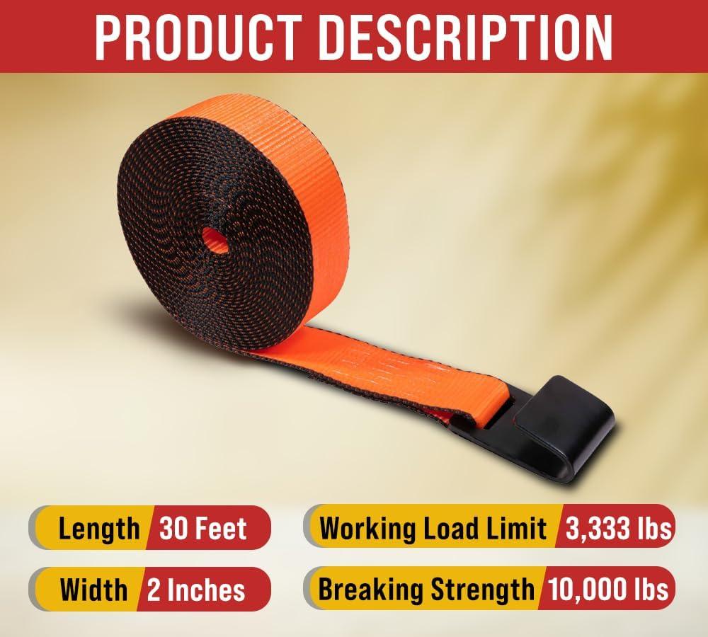 Mytee Products 8 Pack 2″ x30′ Winch Straps w/Flat Hook – 3333lbs WLL – Blue Heavy Duty 2 Inch Cargo Control Tie Down Straps for Flatbed Truck Utility Trailer(Orange)