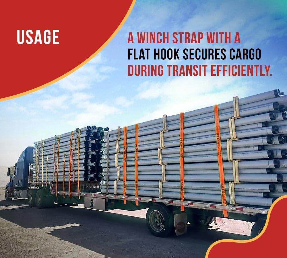 Mytee Products 8 Pack 2″ x30′ Winch Straps w/Flat Hook – 3333lbs WLL – Blue Heavy Duty 2 Inch Cargo Control Tie Down Straps for Flatbed Truck Utility Trailer(Orange)