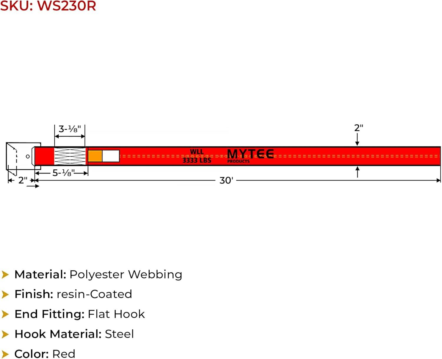 Mytee Products 8 Pack 2″ x30′ Winch Straps w/Flat Hook – 3333lbs WLL – Blue Heavy Duty 2 Inch Cargo Control Tie Down Straps for Flatbed Truck Utility Trailer(Red)