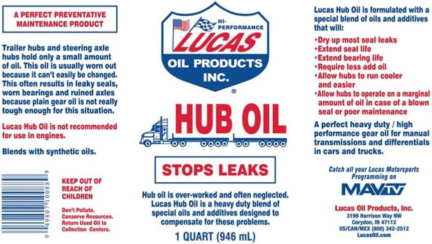 • Unparalleled Performance and Reliability: Lucas Oil Hub Oil is more than just a typical lubricant. It's a powerful ally against leaks, providing a strong defense that not only slows leaks but also prevents downtime. Engineered for extreme temperatures, it ensures uninterrupted performance even in the toughest conditions.