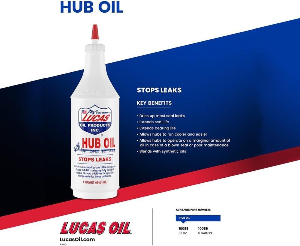 - Lucas Hub Oil: The premier choice for heavy-duty truck maintenance. With unbeatable heat resistance and longevity, it's the ultimate solution for leak prevention and seamless operations.