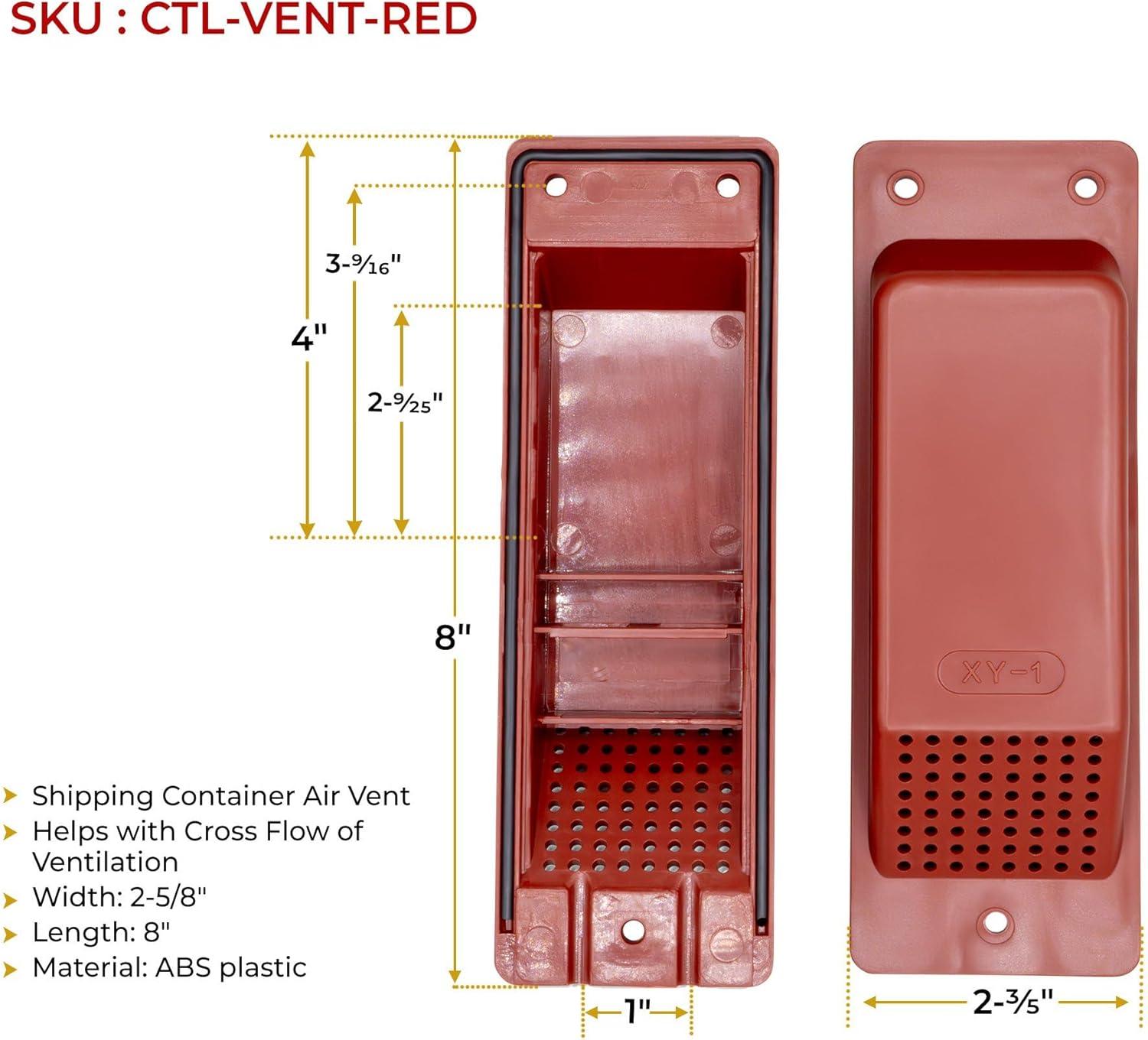 Mytee Products (8 Pack) Shipping Container Air Vent, Cross Flow Ventilation – Light Grey(Red)