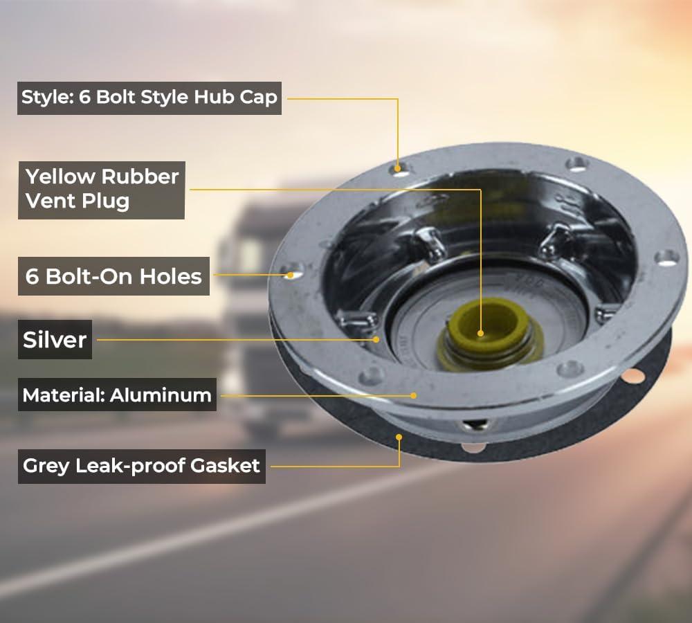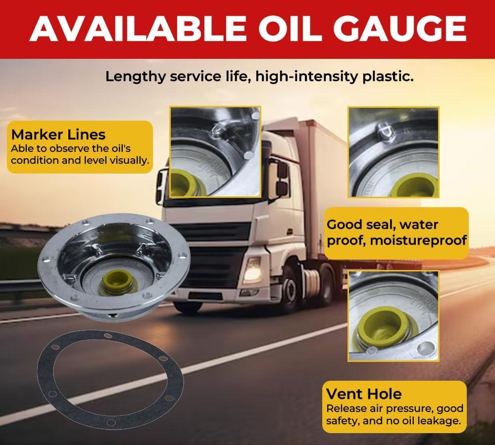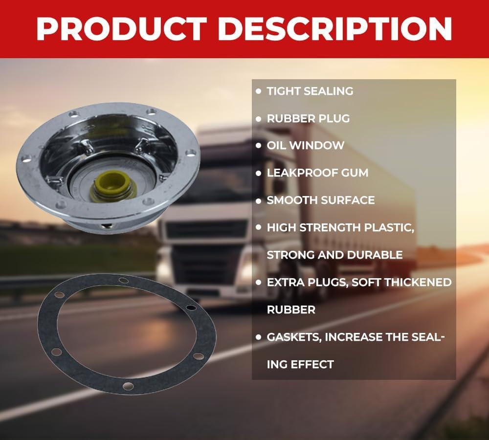 - Robust Construction: We have engineered our tractor-trailer hub caps from aluminum. It will ensure long-lasting performance and protect it against rust and corrosion. Meanwhile, other parts of the hub cap i.e. the vent plug are made from yellow rubber, and the transparent window is made from plastic. All the parts and its material will ensure uninterrupted efficiency for a long time.