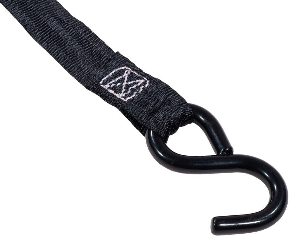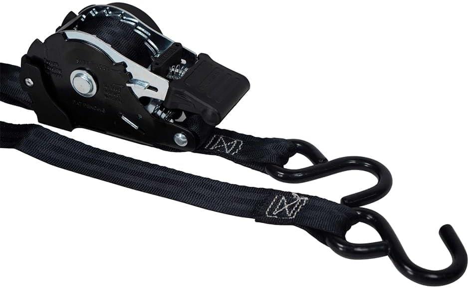 ✔ STRAP IN MOTORCYCLES, bikes, boats, or anything else you want to transport. A single strap has a working load limit of 500 lbs! And the black-powder-coated S-hook fits over dolly trailer bars and bike handlebars without causing scratches or dings.
