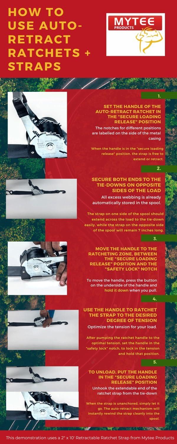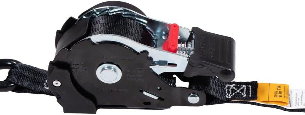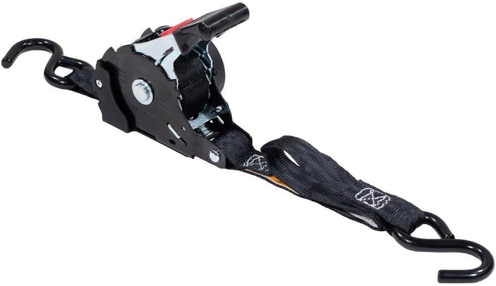 ✔ NO MORE TANGLED STRAPS. When you unhook the strap, and the ratchet handle is in the “Secure Loading Release” position, all 12 feet of strap automatically spools back tight into the steel casing. No loose straps or extra material to deal with.