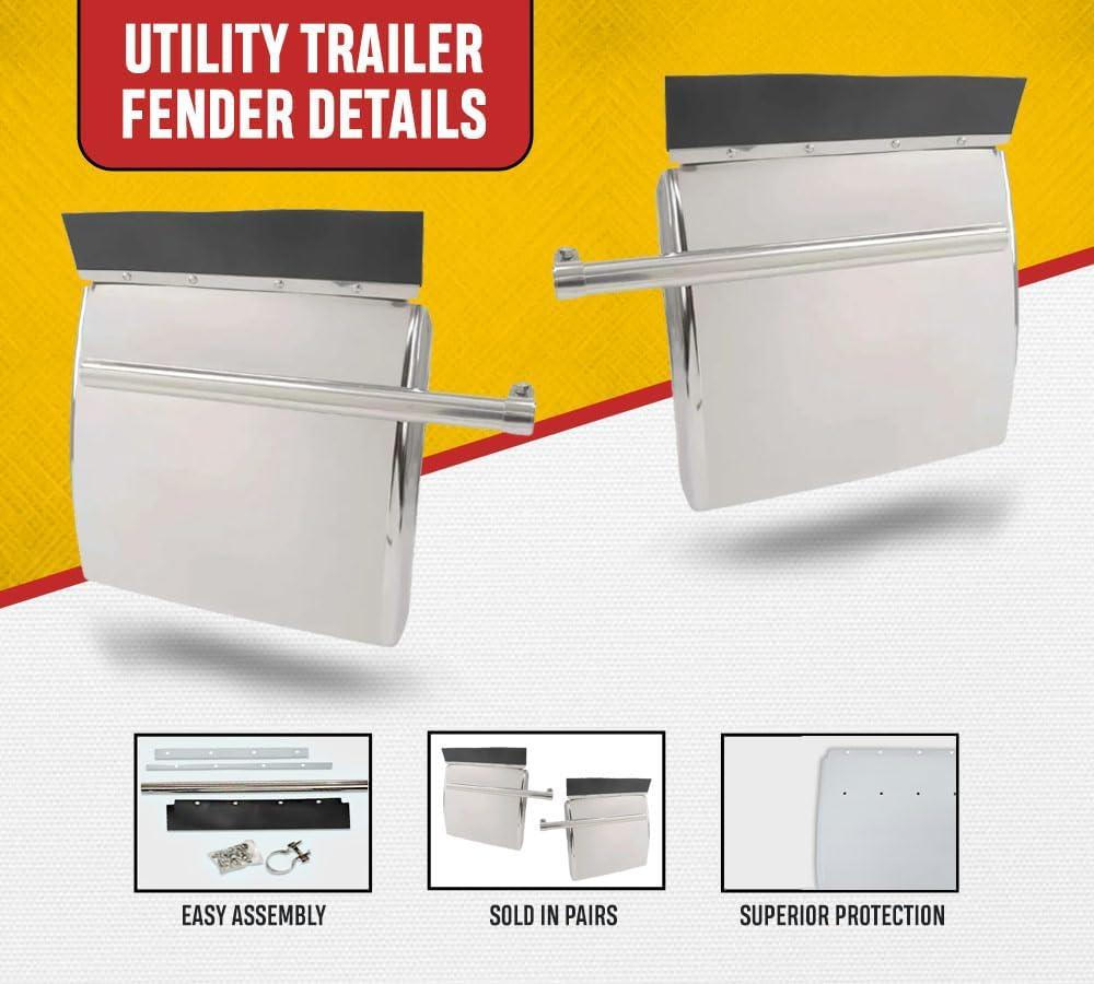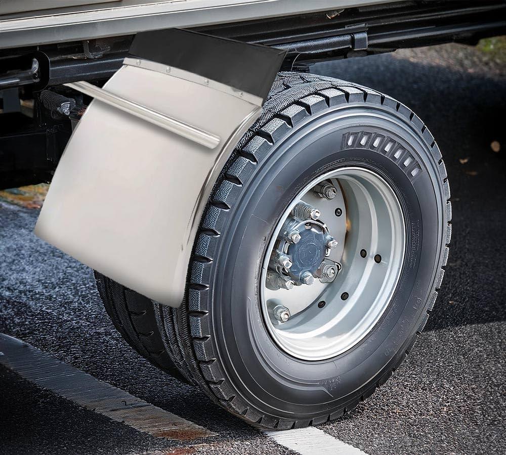 Mytee Products Black Poly Quarter Fender for Semi Truck Set 24″x24″ – Standard Mounting Tube Bracket Kit Included – Semi Truck Accessories for Kenworth Freightliner Peterbilt (Set of 2)(Stainless Steel Quarter Fender)