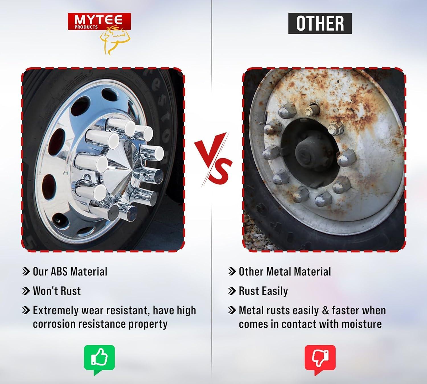 - Perfect Compatibility: These covers are a perfect match for your Kenworth, Freightliner, and Peterbilt trucks because they are tailored to accommodate 33mm standard nuts. Keep in mind that the recommended lug nut size for these models is 33mm.
