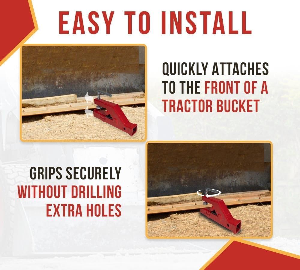 • Easy to Install and Use: This is a handy tool for quickly attaching things to the front of your tractor bucket. It can easily grip the tractor bucket in seconds without needing to drill extra holes. And when you're finished, it's easy to remove.