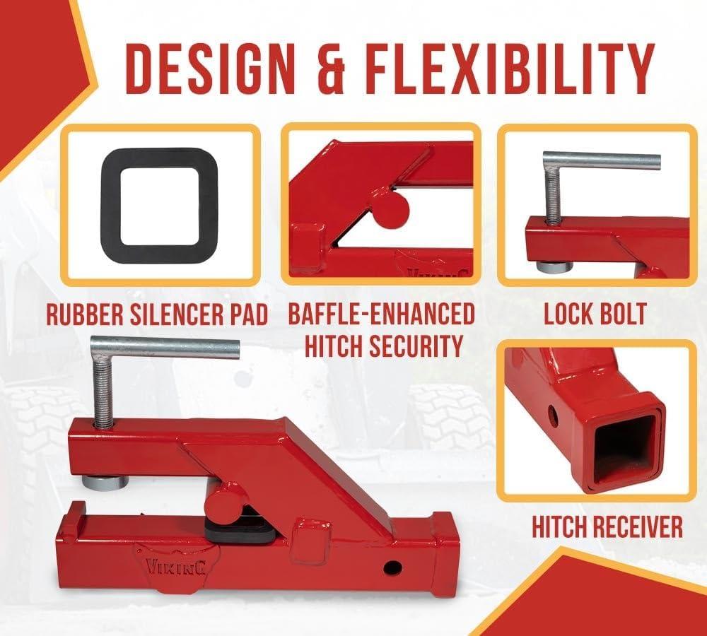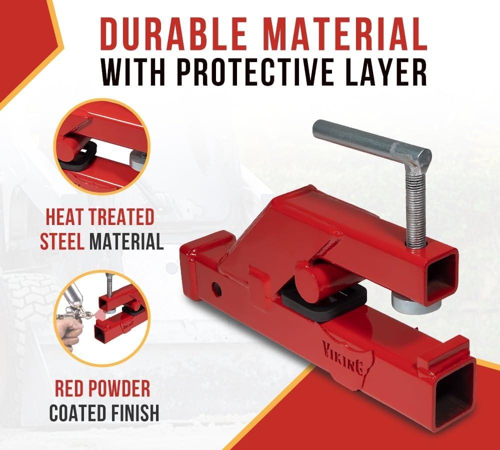 Red Powder-Coated Finish: The hitch is coated with a bright red powder finish that not only provides a sleek look but also protects against rust, corrosion, and weather-related damage, ensuring long-term durability.