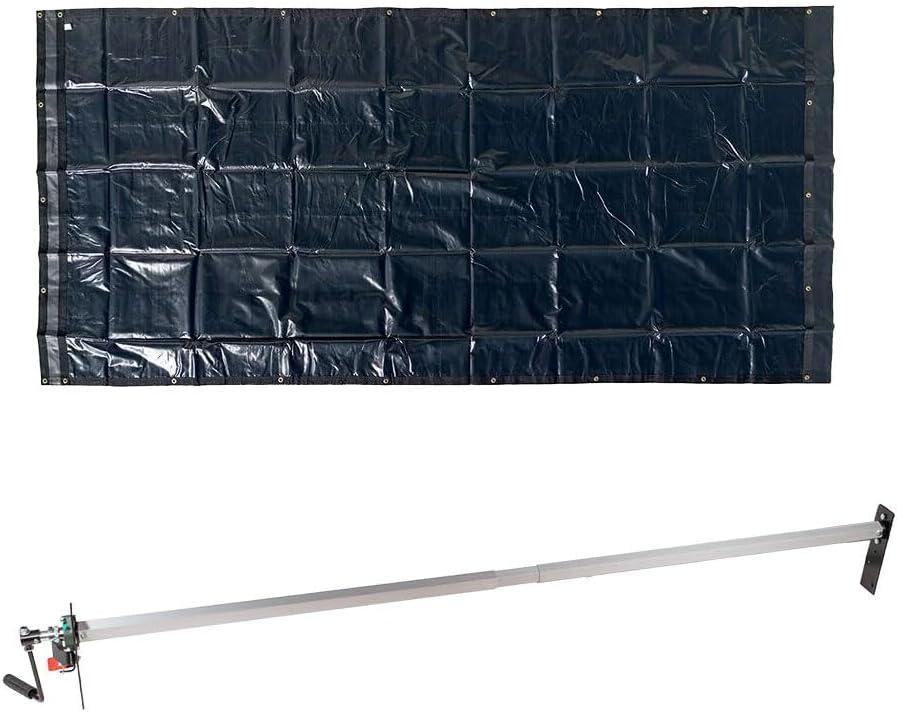 Mytee Products Dump Trailer Tarp Kit w/ 7ft 6" x 20' Black Asphalt Vinyl Tarp w/Double Pocket & Grommets - Manual Cab Level Hand Crank Roller - 18Oz Vinyl Waterproof(7' x 15')