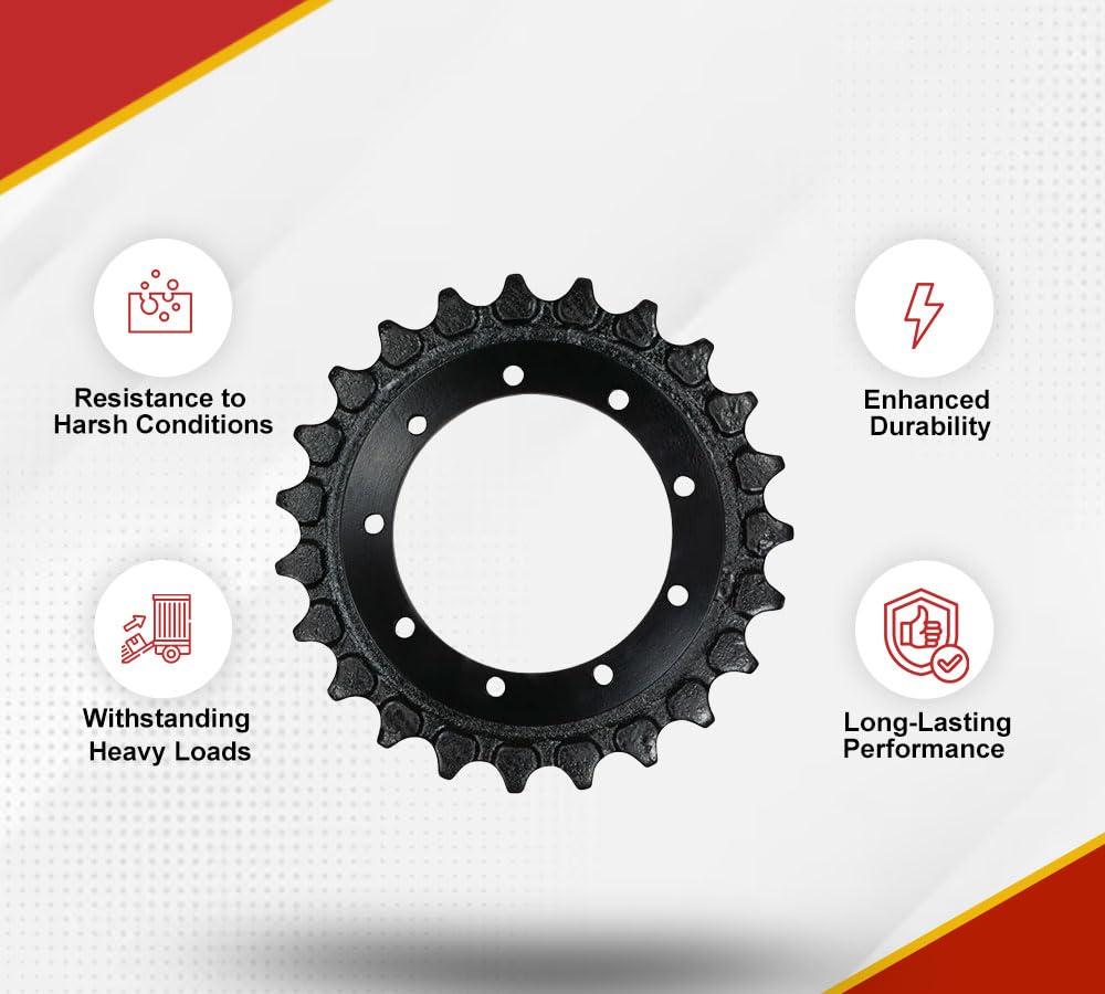 • Forged for Strength: All our mini excavator sprockets are engineered with 40Mn Carbon Structural Steel. Constructed with a forging process to make them highly durable. It can withstand heavy loads, ensures smooth functionality, and high performance in rough terrains.