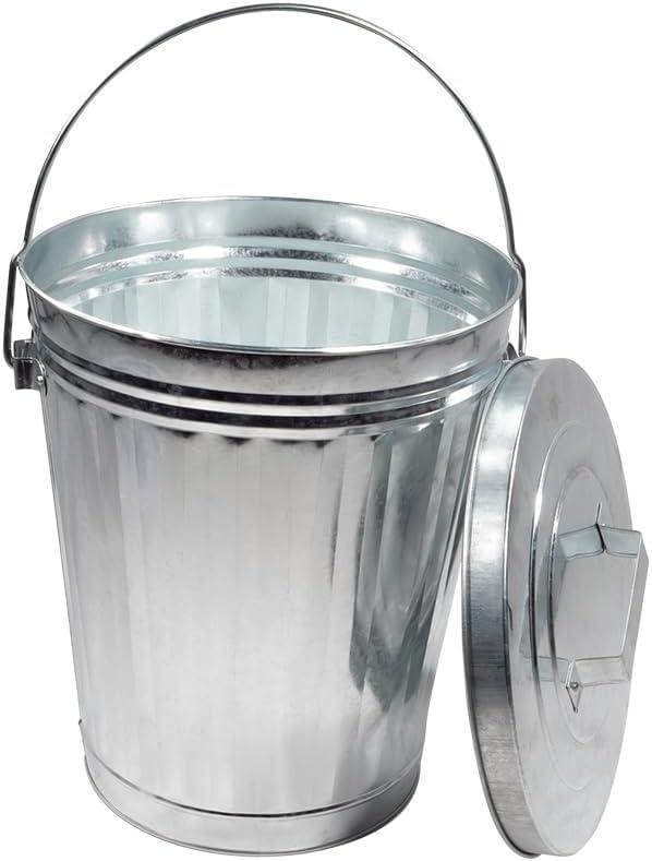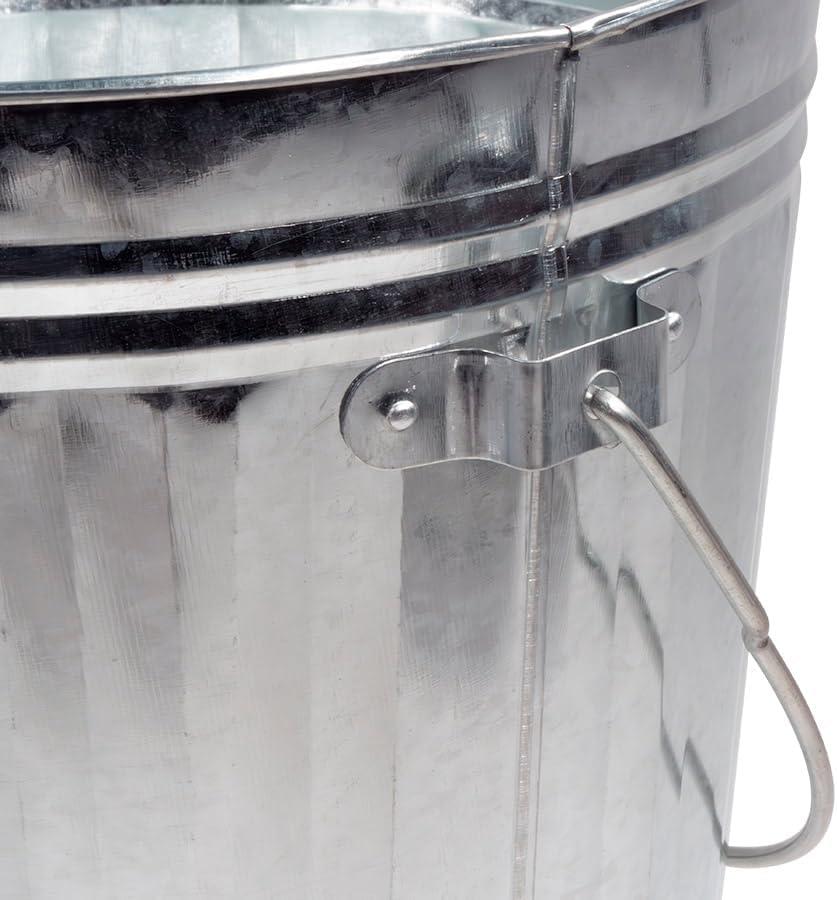 • Simple Design: Our galvanized metal trash can is designed for convenience. It features a metal lid to keep the waste secure and an easy-to-use carrying handle for easy portability. The lid fits securely to the bucket shape using the carrying handle. Thus keeping the handle upright and providing easy access when needed. The opening mechanism has a manual lift.