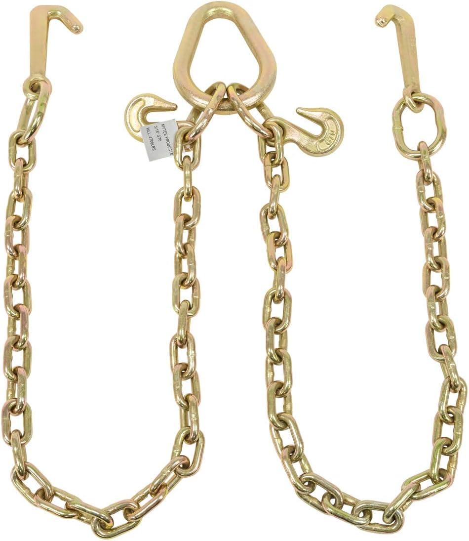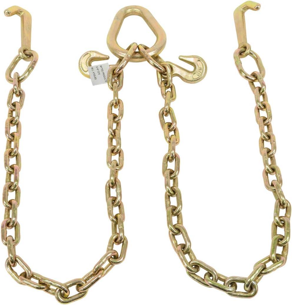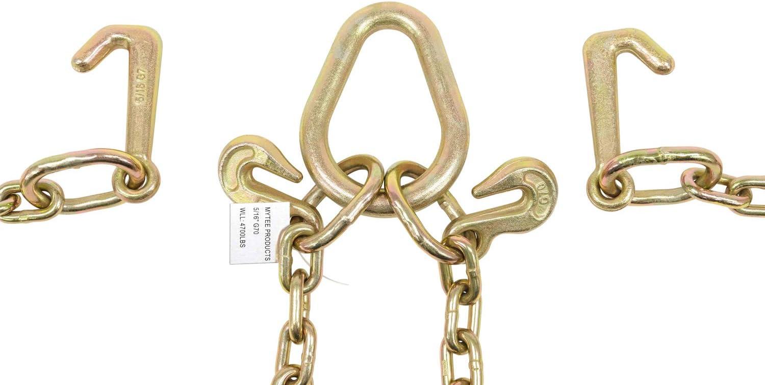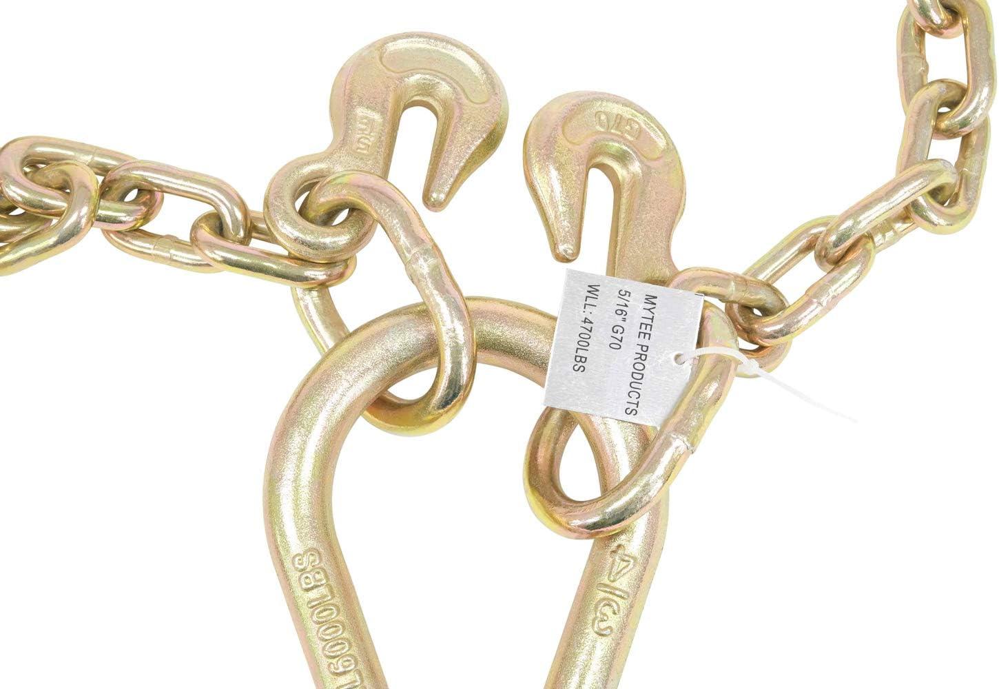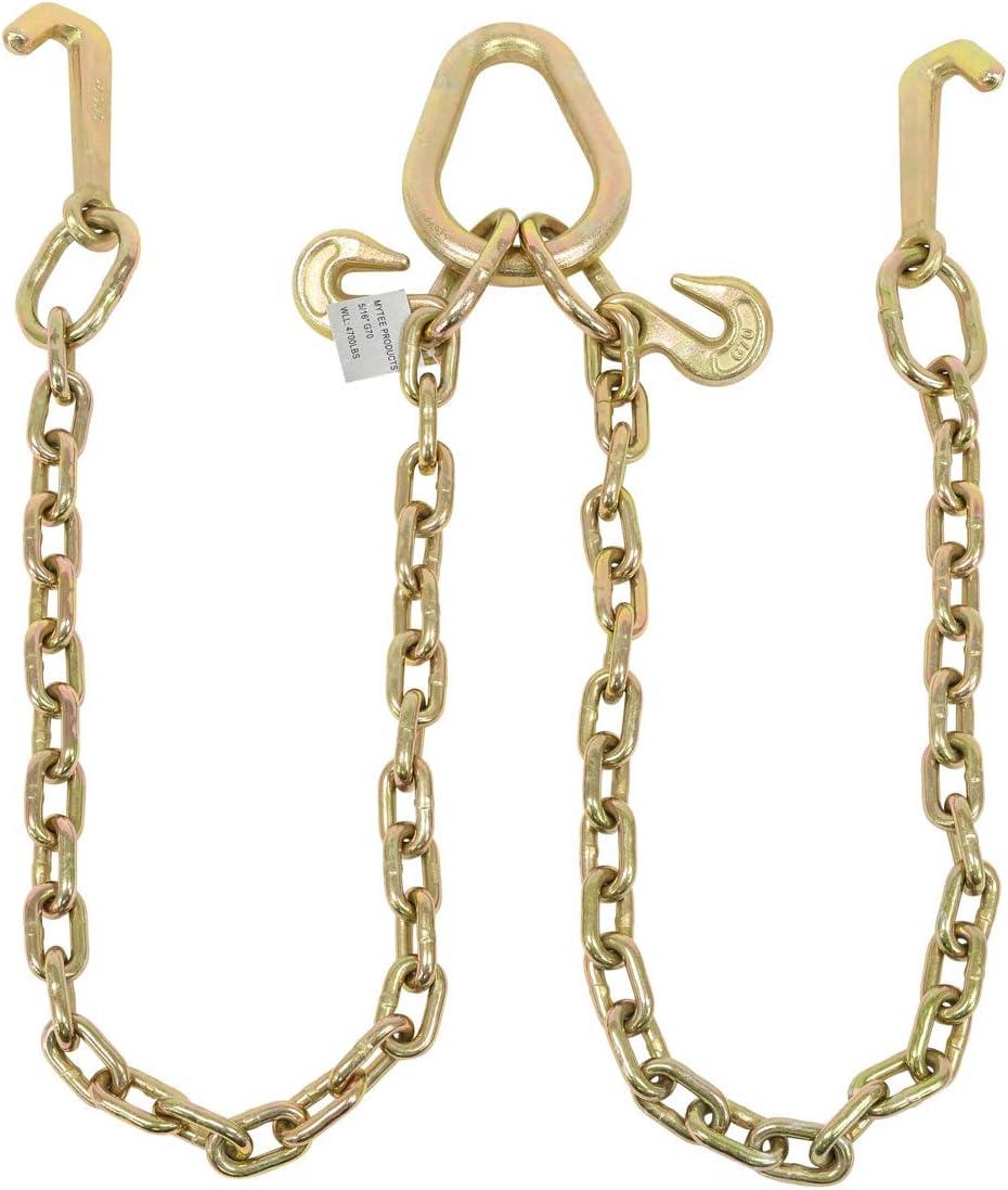 Mytee Products Grade 70 5/16″ V-Chain Bridle Tow w/ 4″ Mini J Hooks & Grab Hooks at Pear Link – 3′ Leg 4700 LBS WLL Tow Truck Chain for Trailer Wrecker Recovery Towing(1 – Pack)
