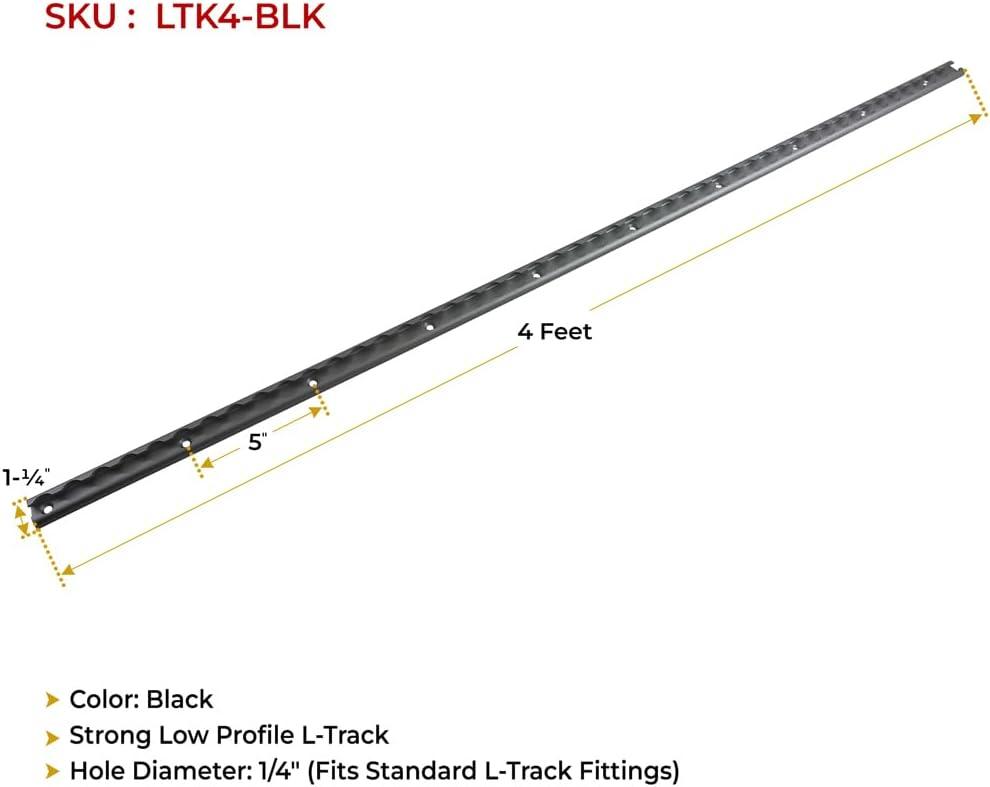 ✔ 2 Pcs – 4 Feet L-Track Black Powder Coated: Length: 48″ (w/9 Mounting Holes). Hole Diameter is 0.25″ (Fits Standard L-Track Fittings)