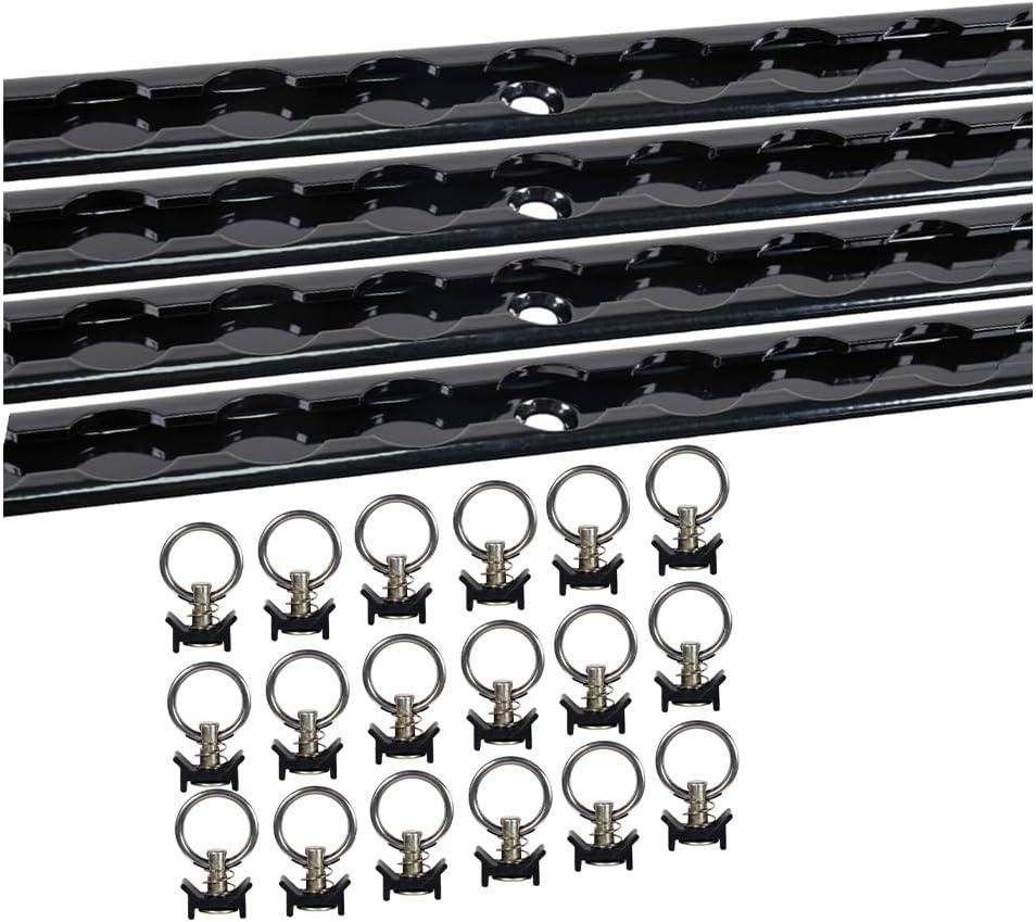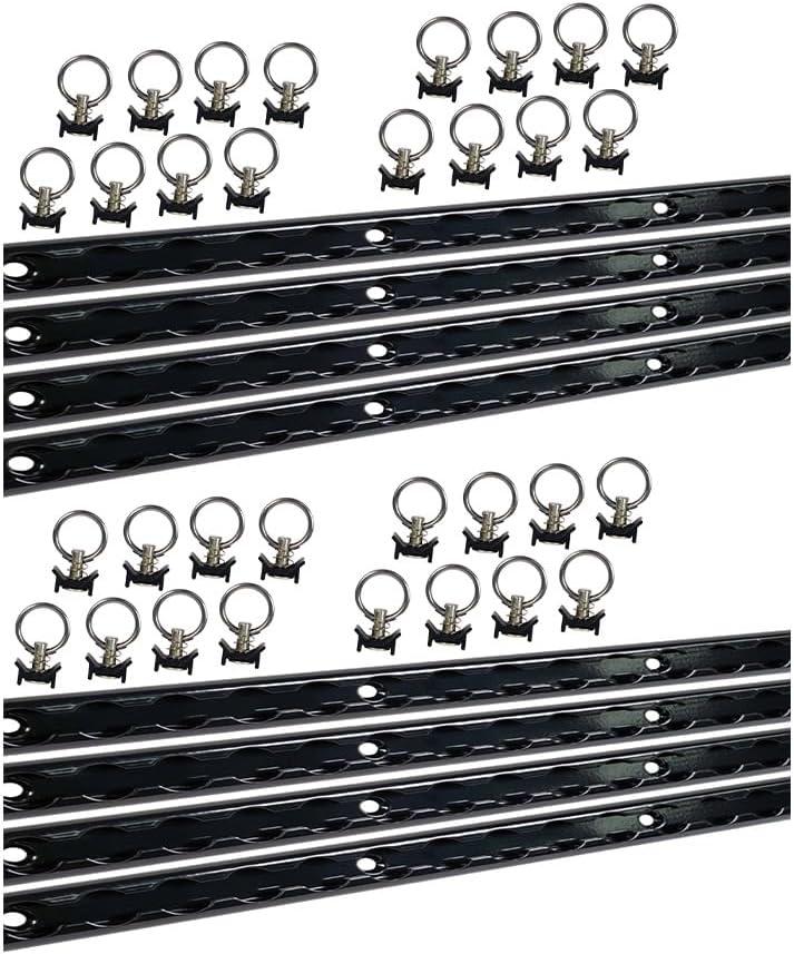 Mytee Products Heavy Duty Aluminum 4 Feet L-Track Black Powder Coated (2) and Stud with Black Powder Coated Ring (8) Tie Down System for Enclosed Trailers and Cargo Vans(Silver)